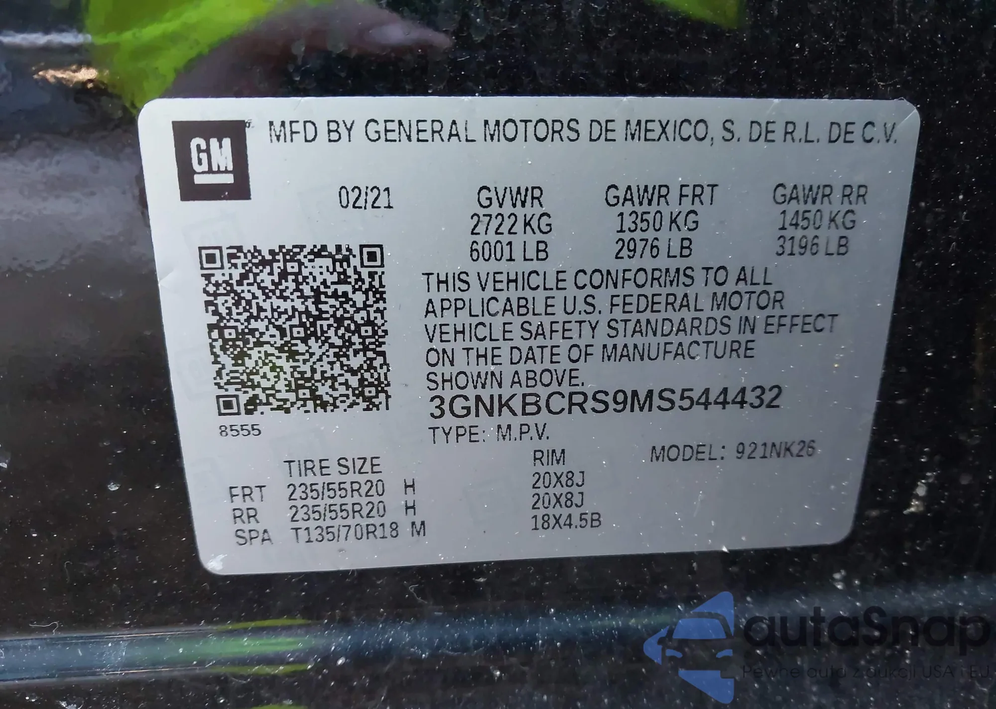 • VIN 3GNKBCRS9MS544432