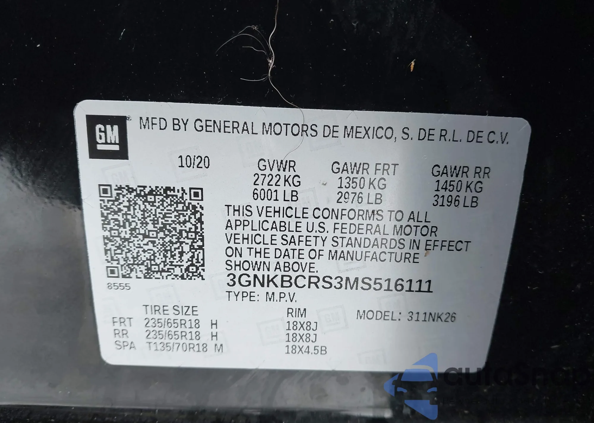 • VIN 3GNKBCRS3MS516111