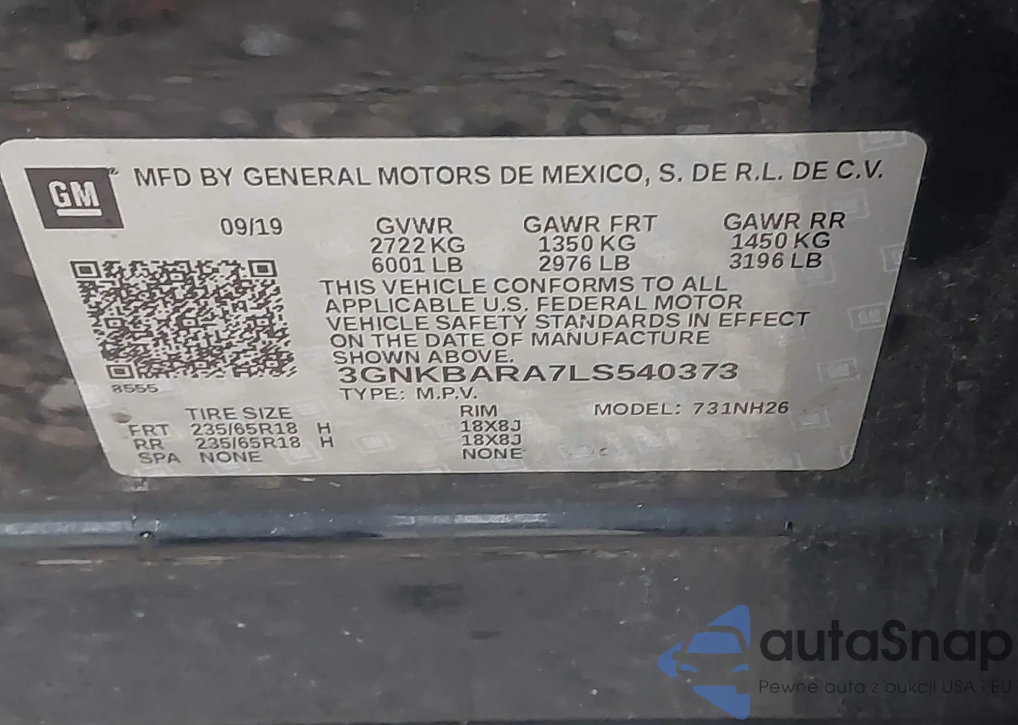 • VIN 3GNKBARA7LS540373