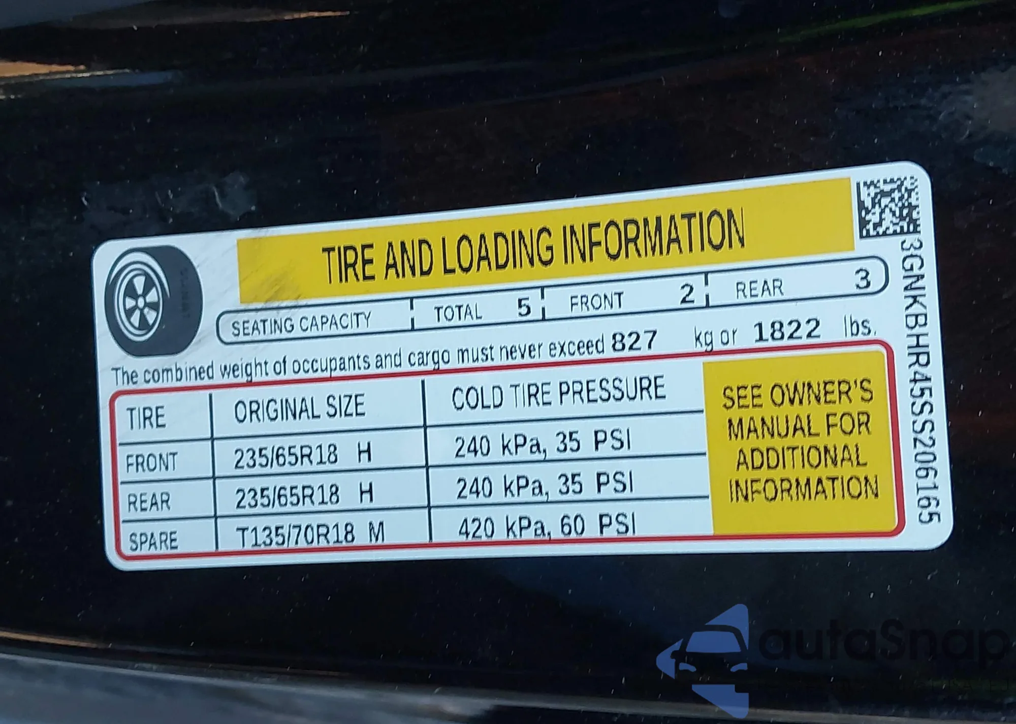 • VIN 3GNKBHR45SS206165