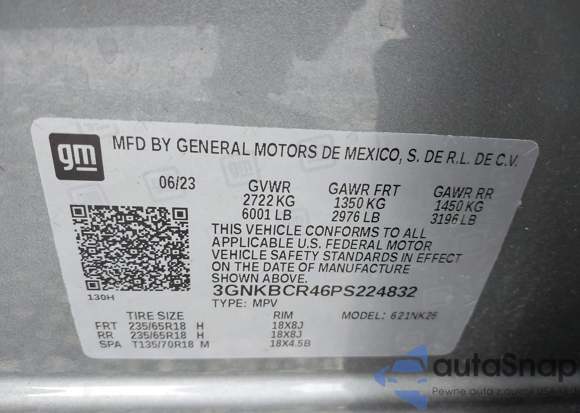 • VIN 3GNKBCR46PS224832