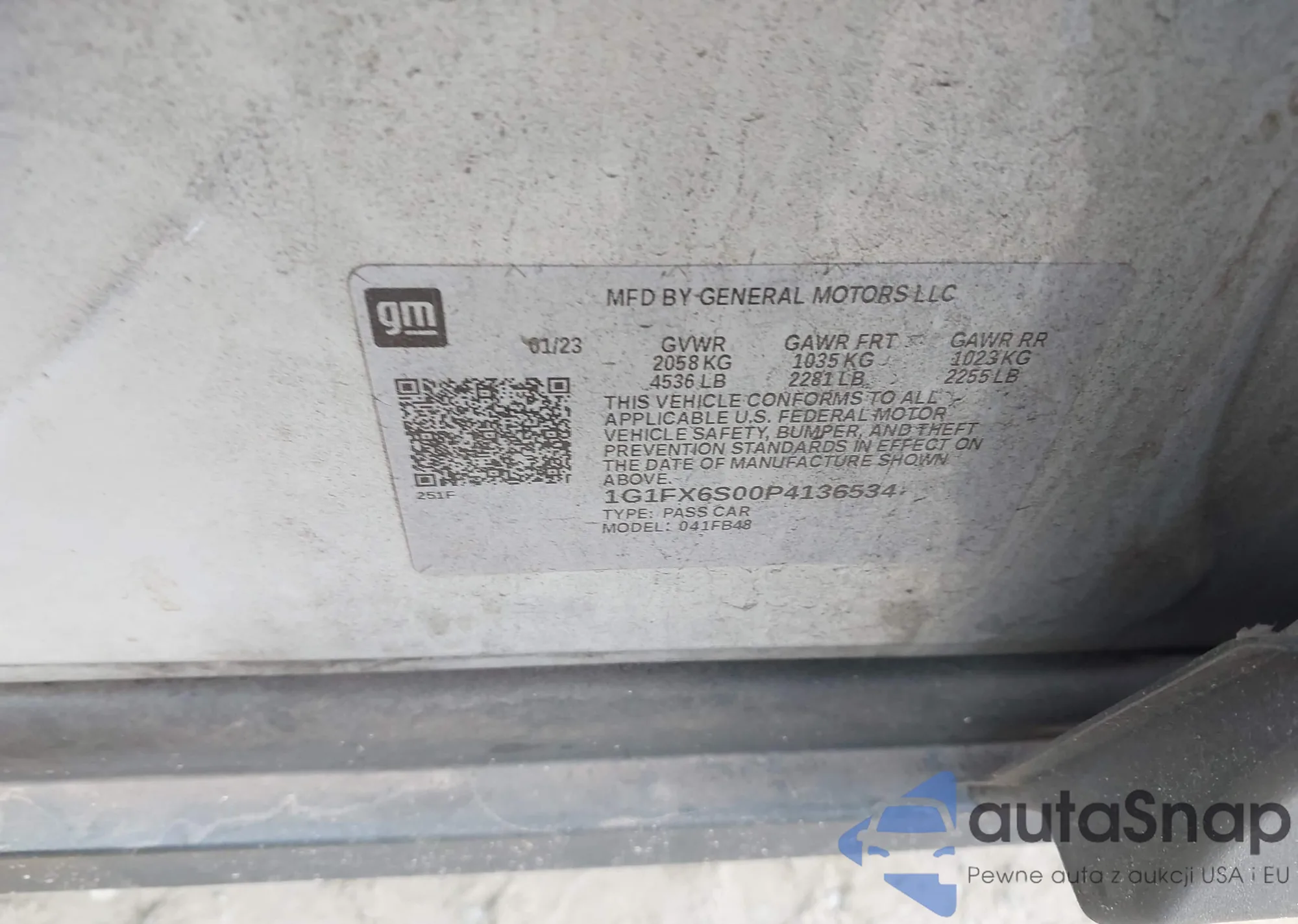 • VIN 1G1FX6S00P4136534