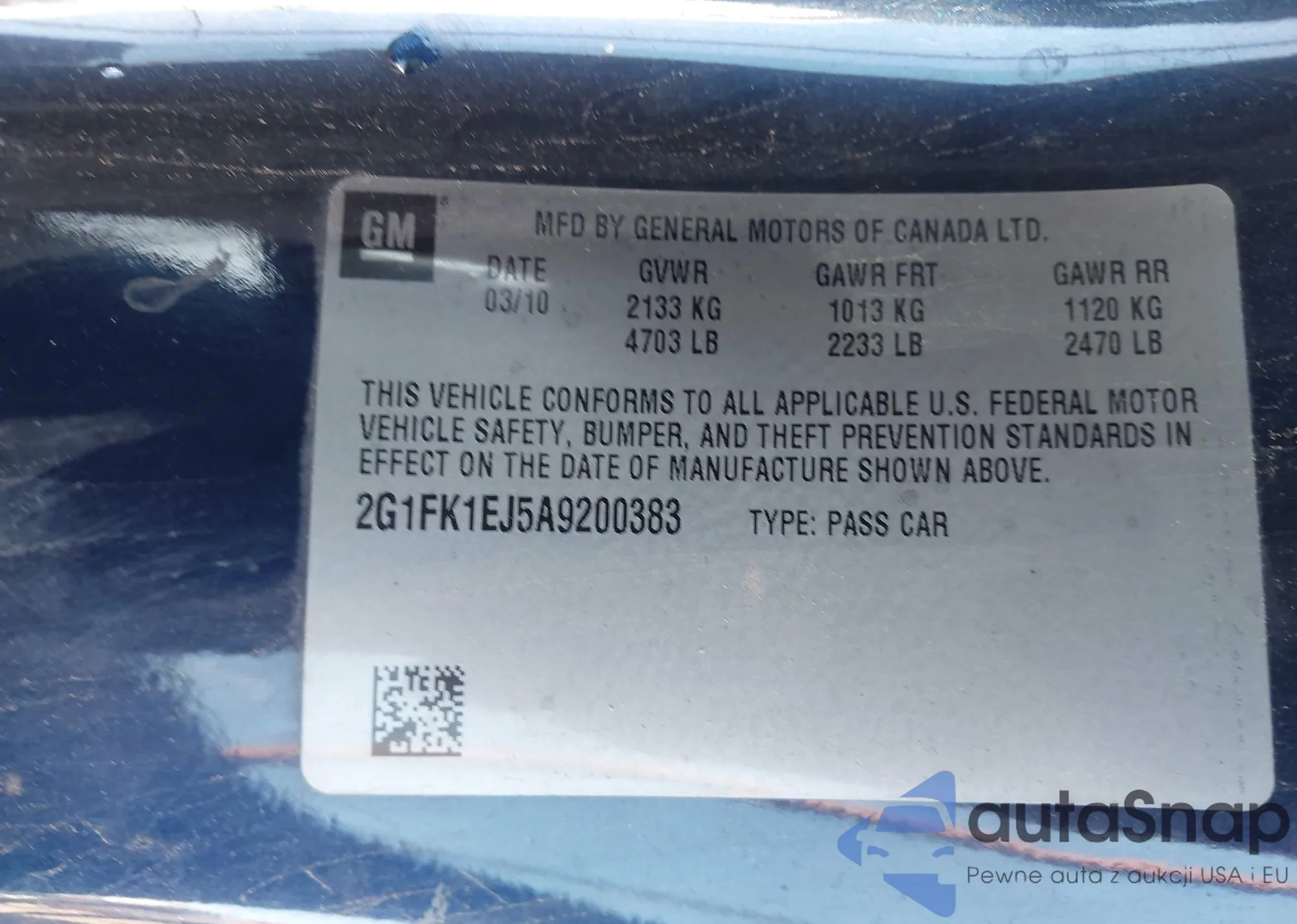 • VIN 2G1FK1EJ5A9200383