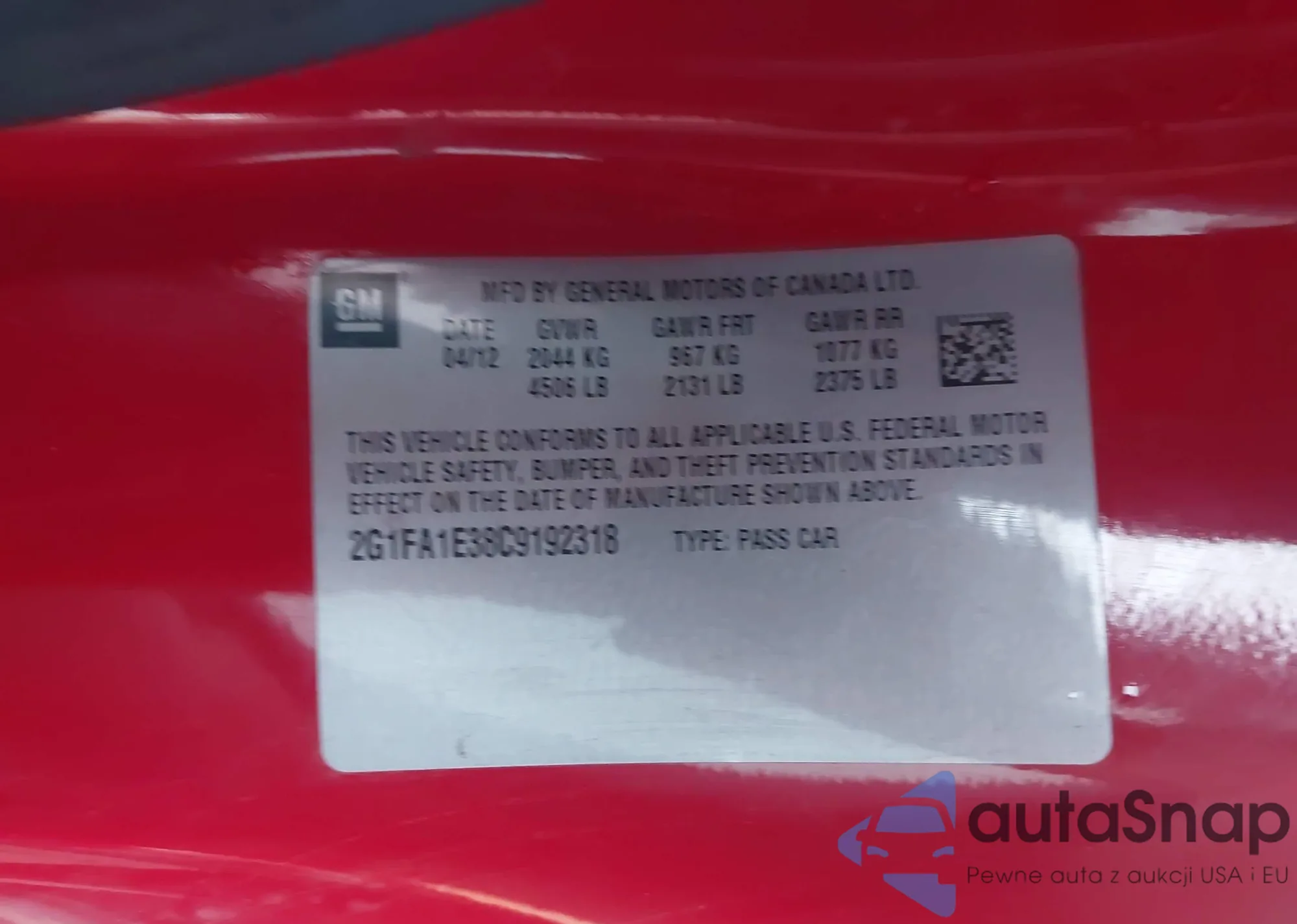 • VIN 2G1FA1E38C9192318