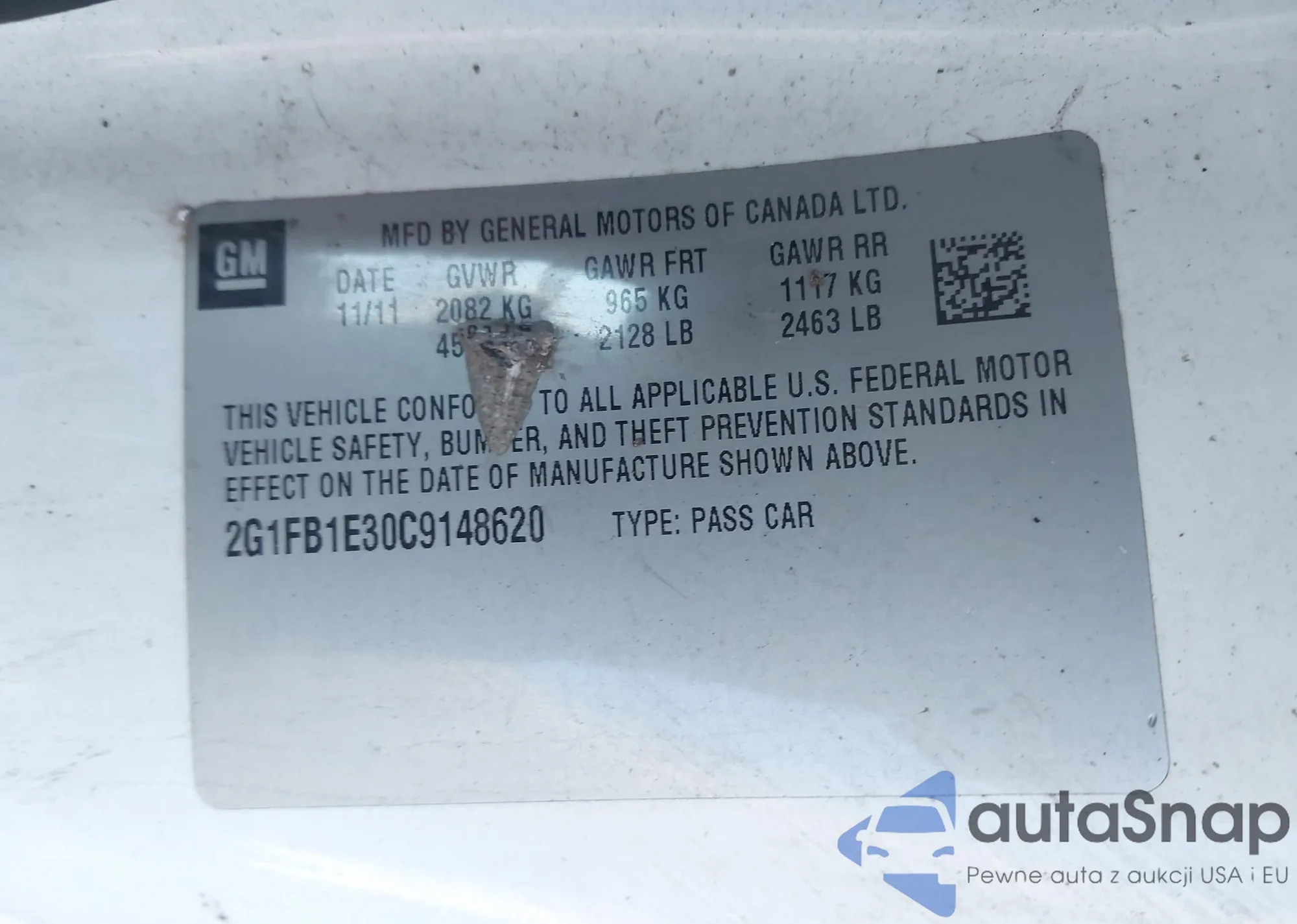 • VIN 2G1FB1E30C9148620