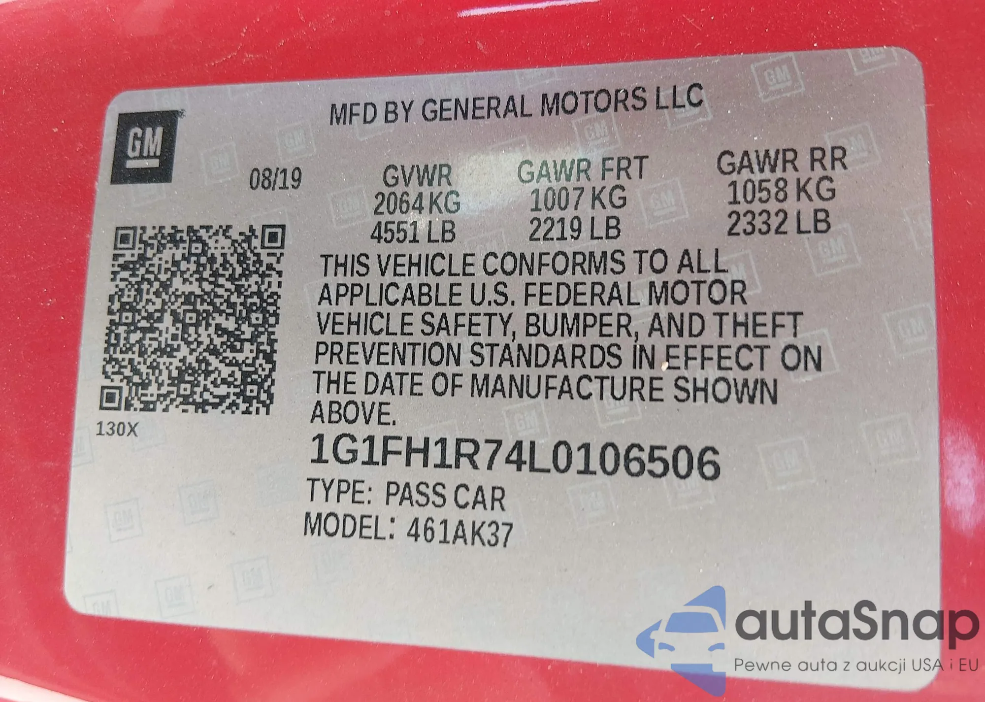 LOT: 44462429 VIN: 1G1FH1R74L0106506