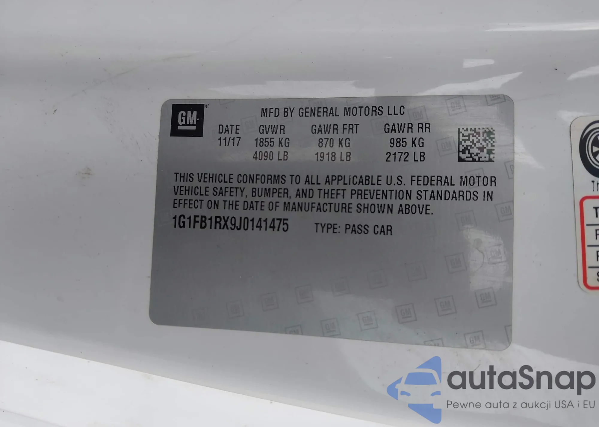 LOT: 44465040 VIN: 1G1FB1RX9J0141475