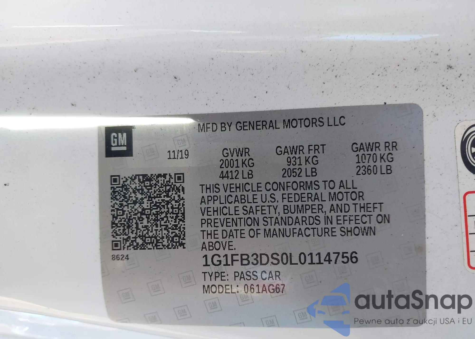 LOT: 43932501 VIN: 1G1FB3DS0L0114756
