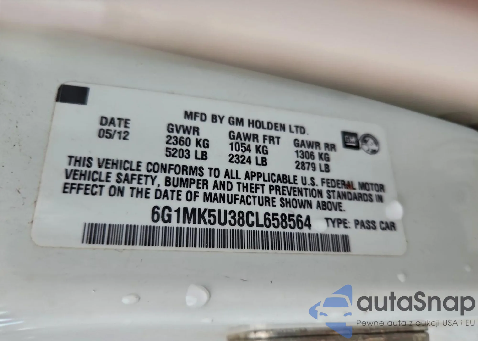 • VIN 6G1MK5U38CL658564