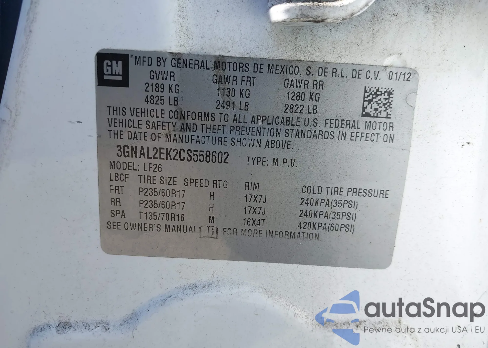 LOT: 44382070 VIN: 3GNAL2EK2CS558602