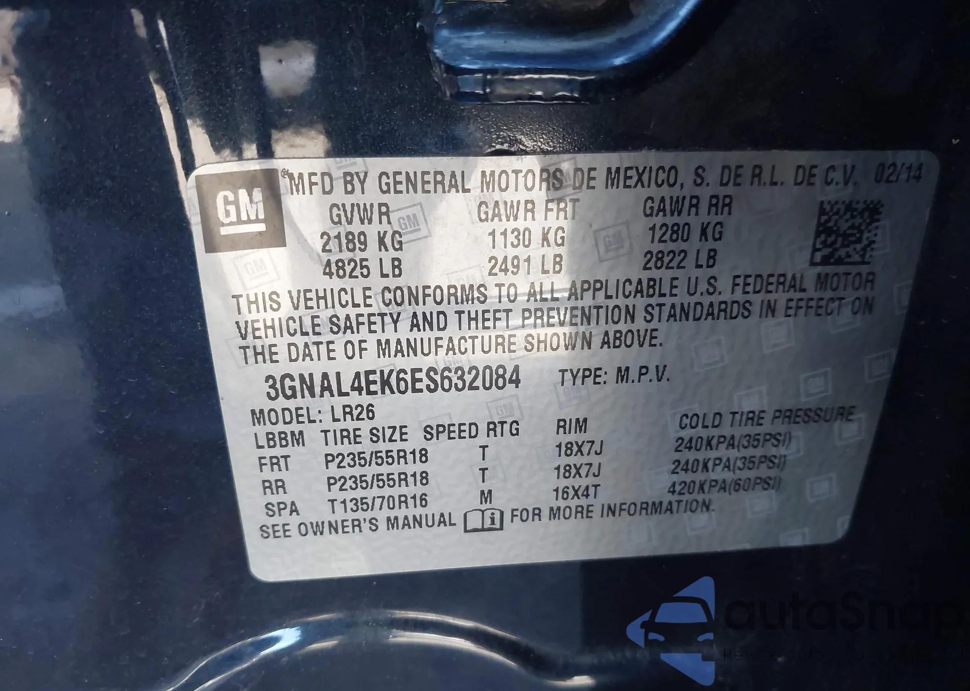 • VIN 3GNAL4EK6ES632084
