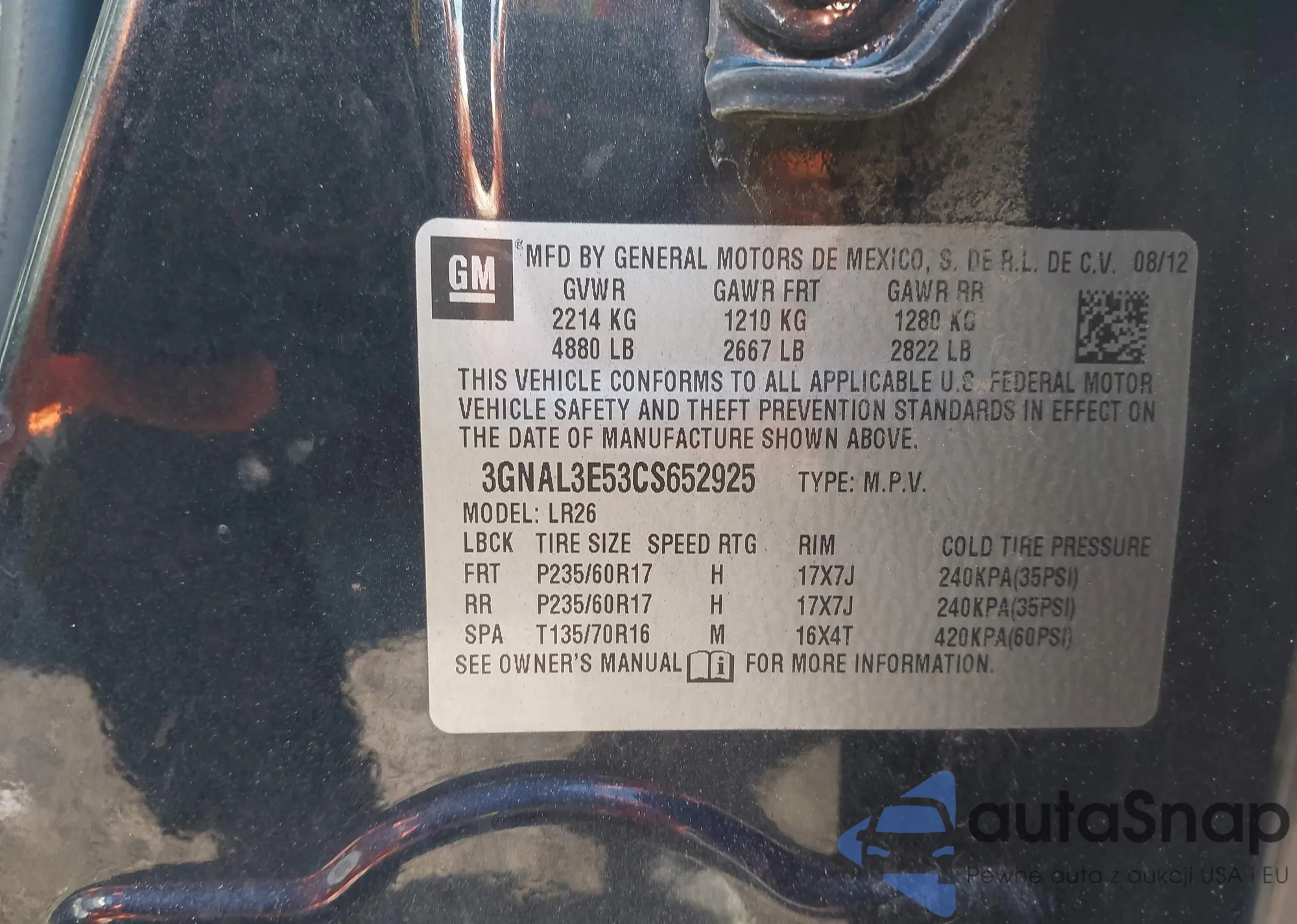 • VIN 3GNAL3E53CS652925