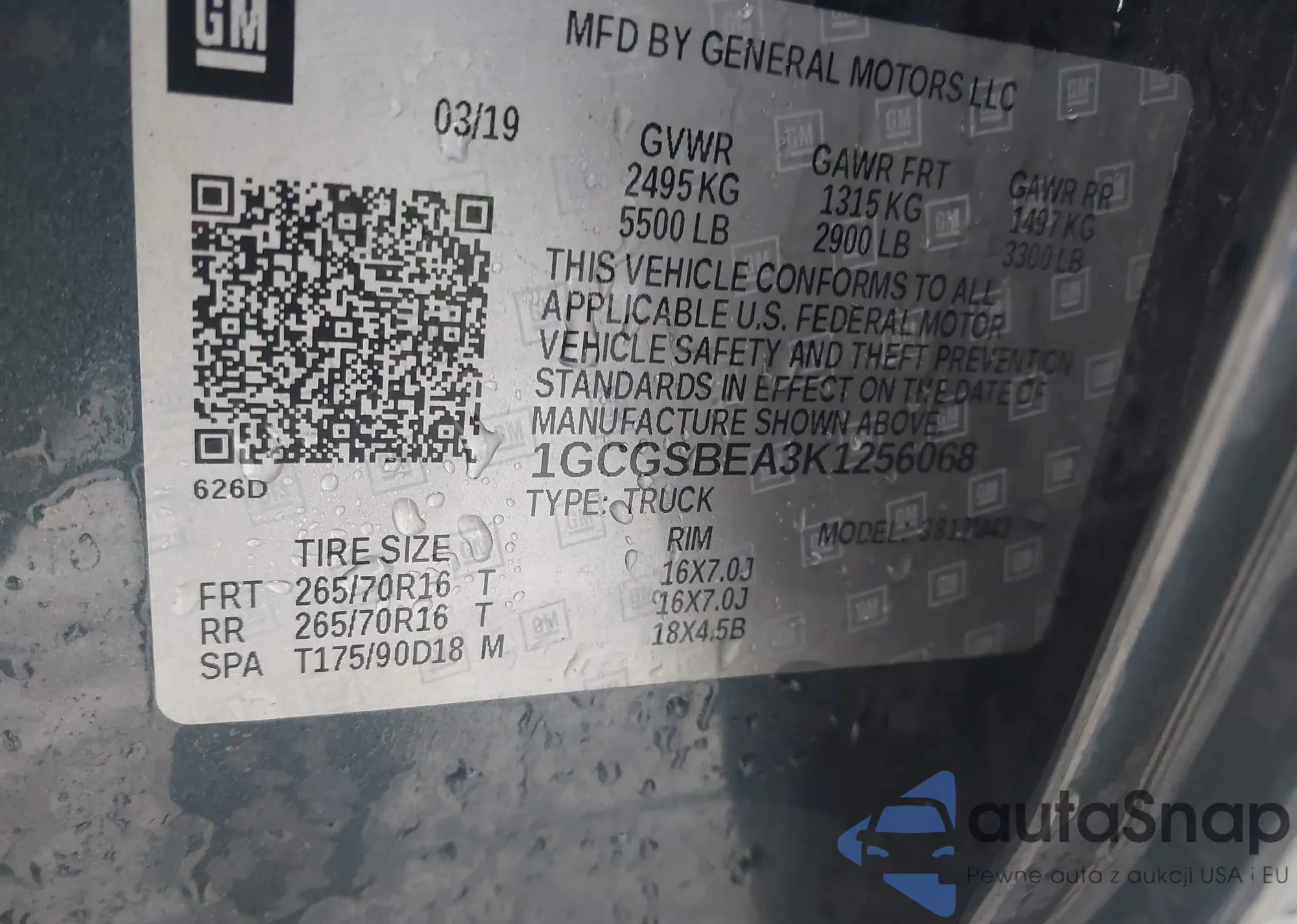 LOT: 44423185 VIN: 1GCGSBEA3K1256068