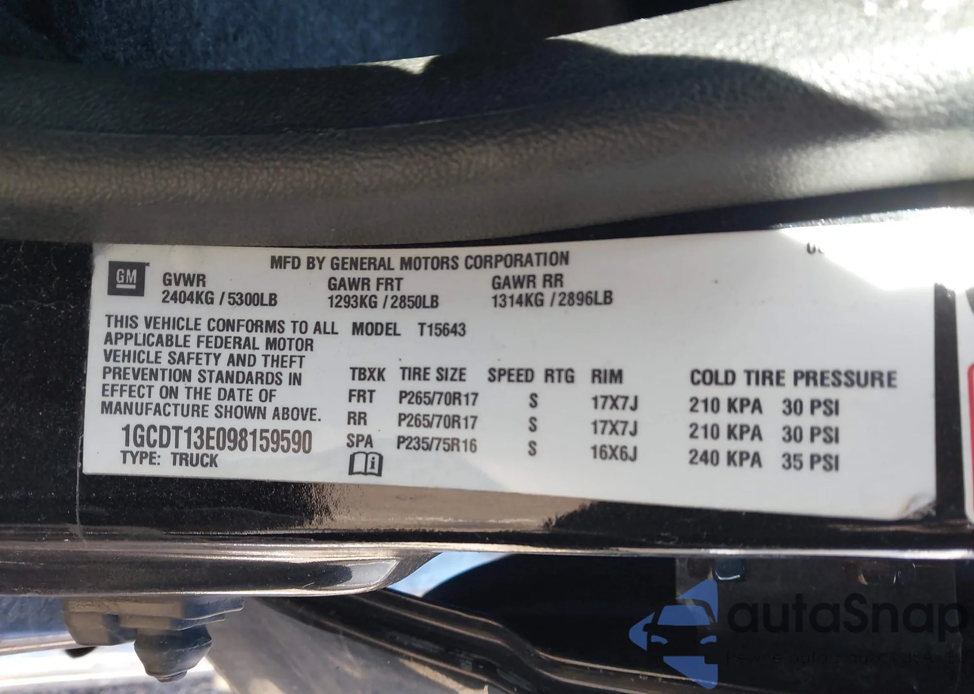LOT: 44361159 VIN: 1GCDT13E098159590