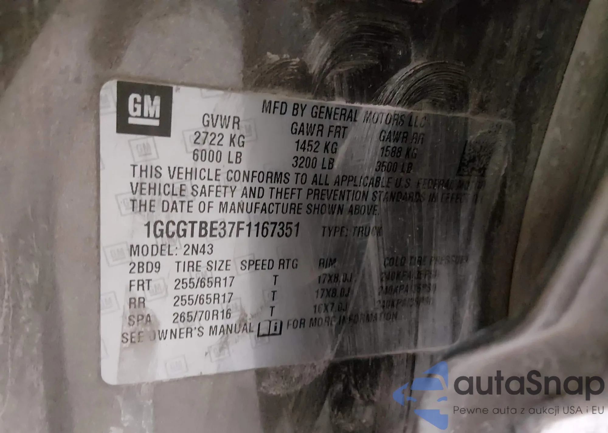 • VIN 1GCGTBE37F1167351