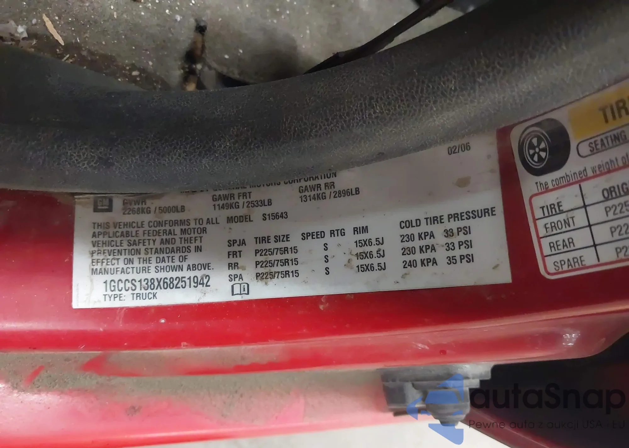 LOT: 44313933 VIN: 1GCCS138X68251942