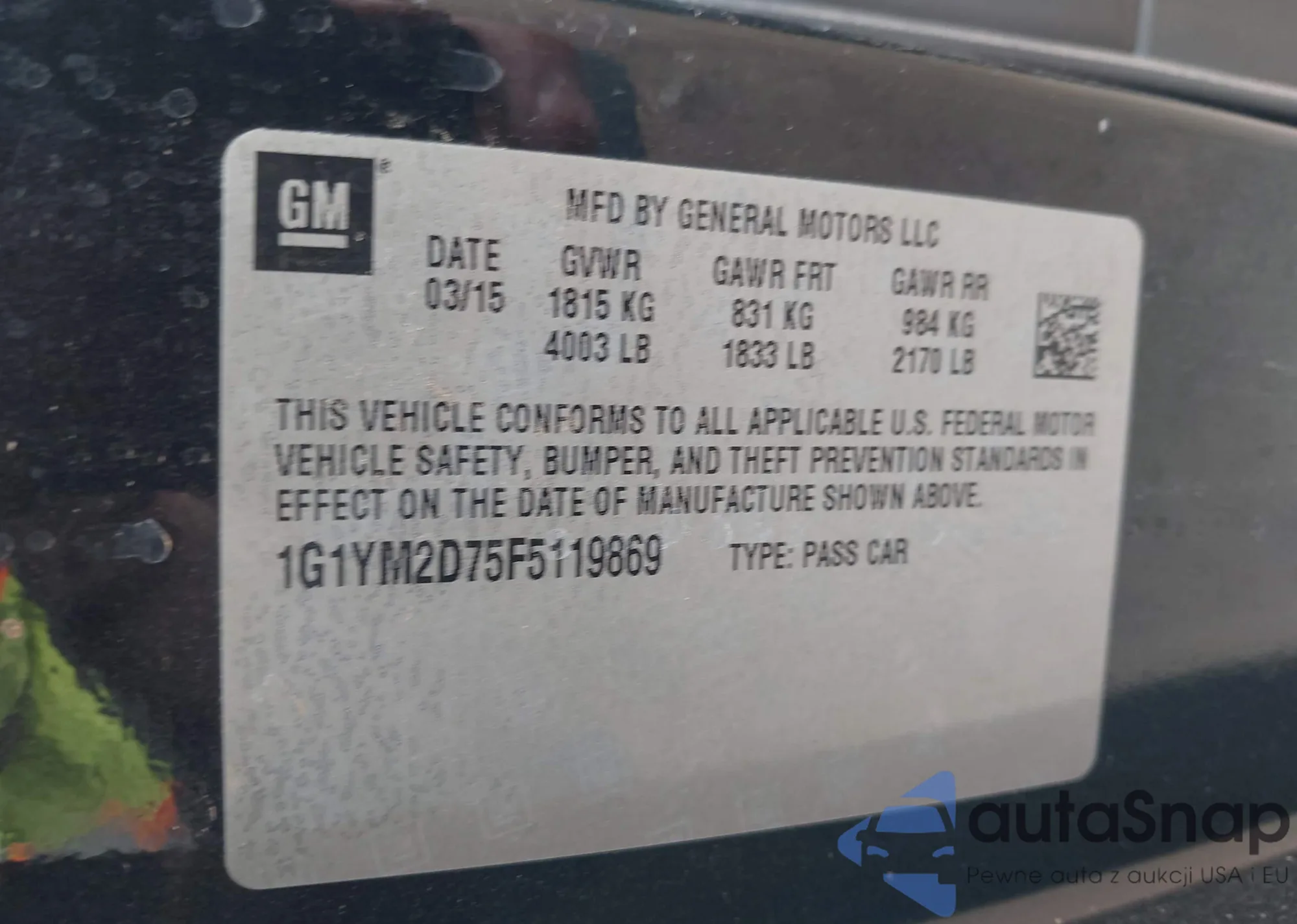 LOT: 44344315 VIN: 1G1YM2D75F5119869