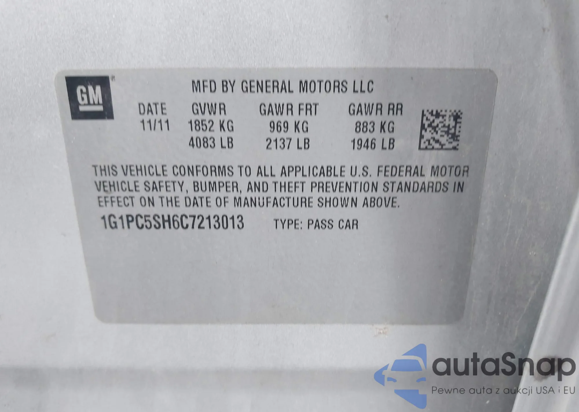 LOT: 44377399 VIN: 1G1PC5SH6C7213013