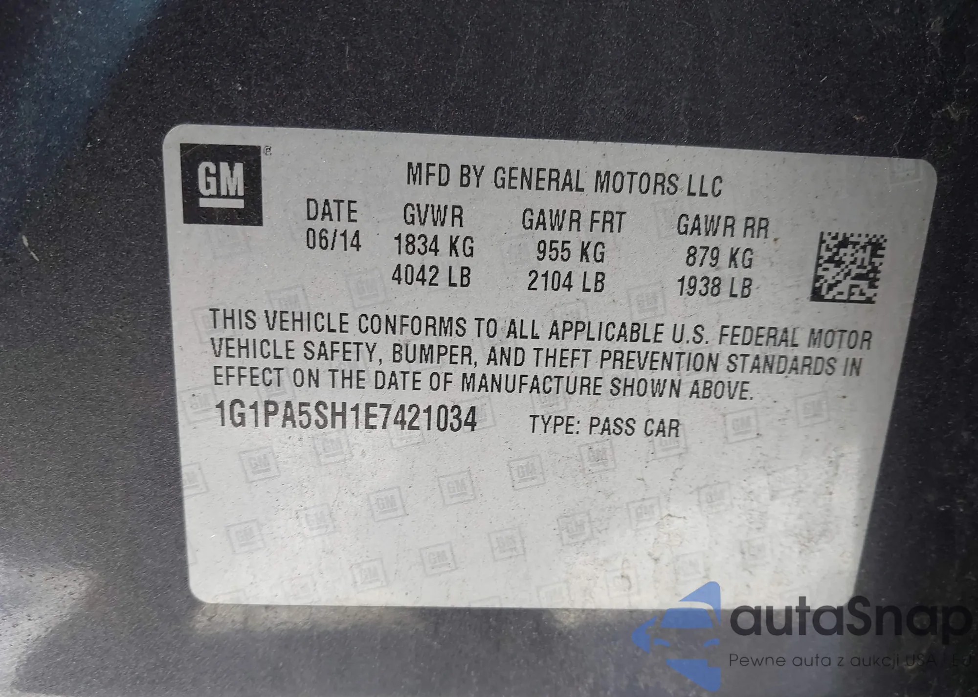 • VIN 1G1PA5SH1E7421034