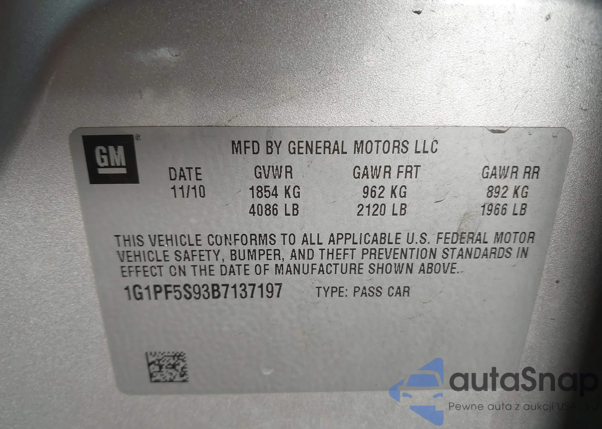 • VIN 1G1PF5S93B7137197
