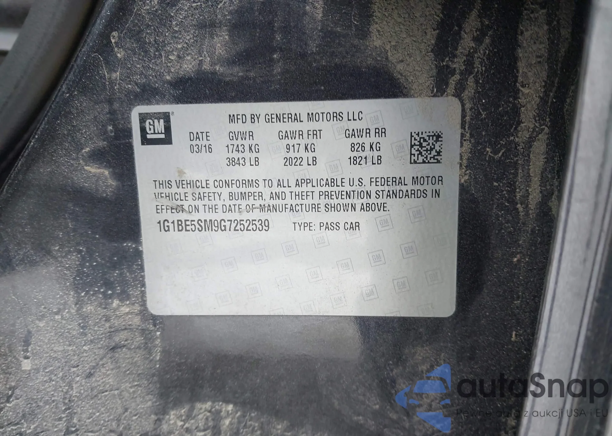 LOT: 44320544 VIN: 1G1BE5SM9G7252539