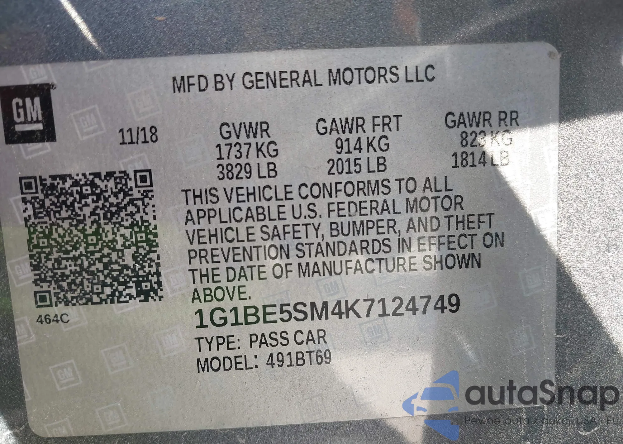 • VIN 1G1BE5SM4K7124749
