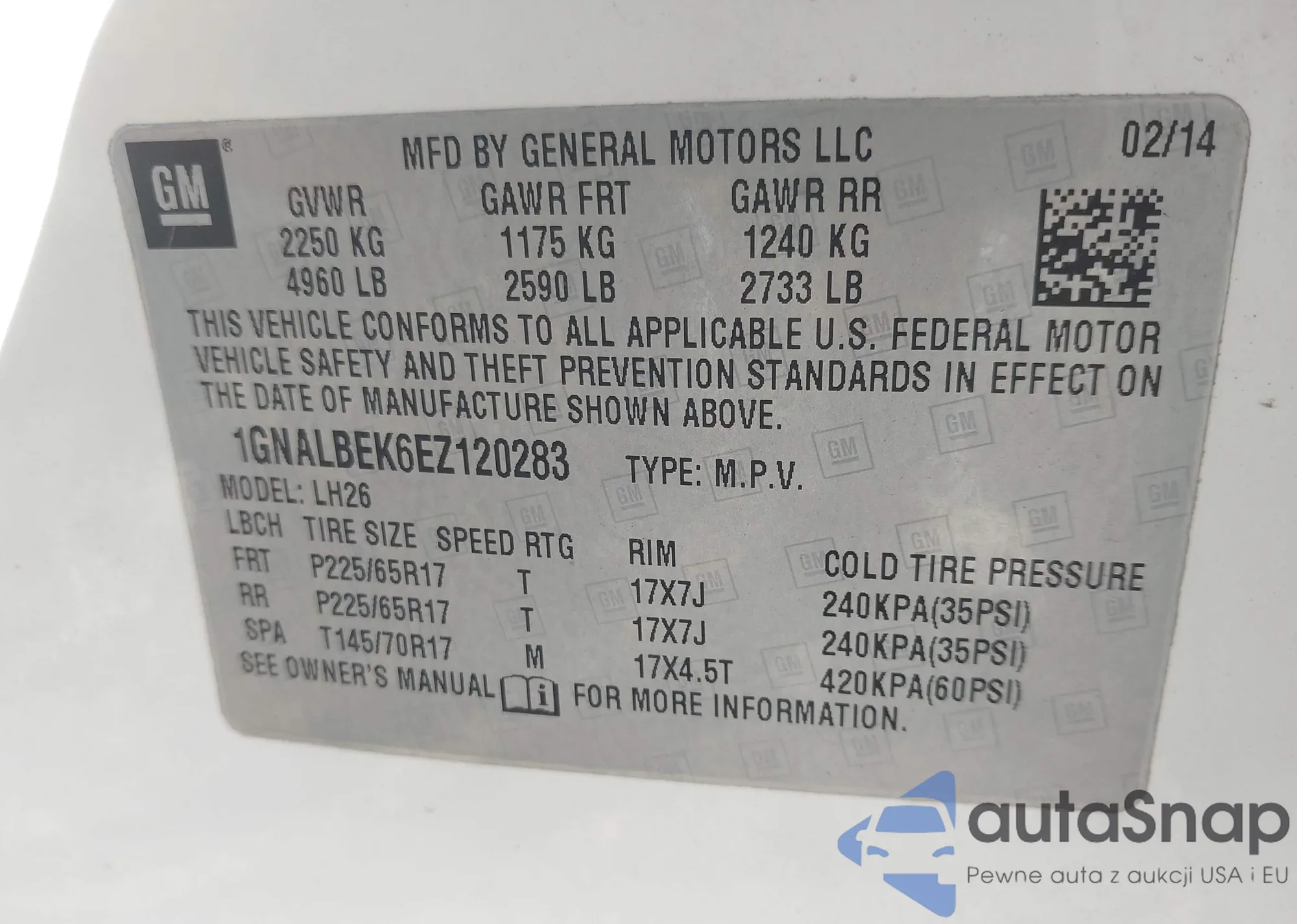 • VIN 1GNALBEK6EZ120283