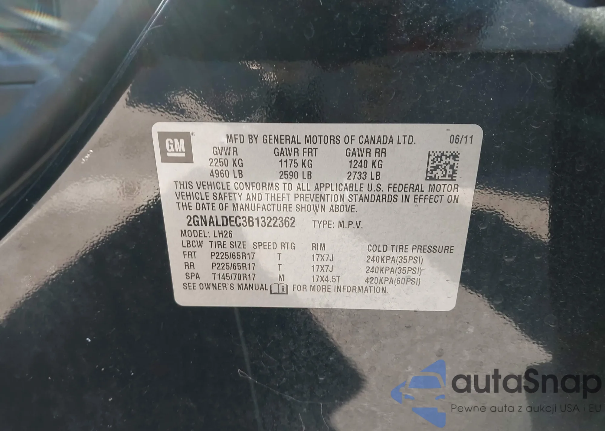 • VIN 2GNALDEC3B1322362