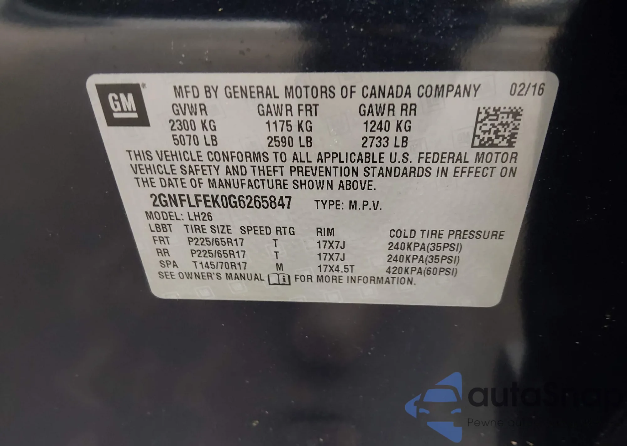 • VIN 2GNFLFEK0G6265847