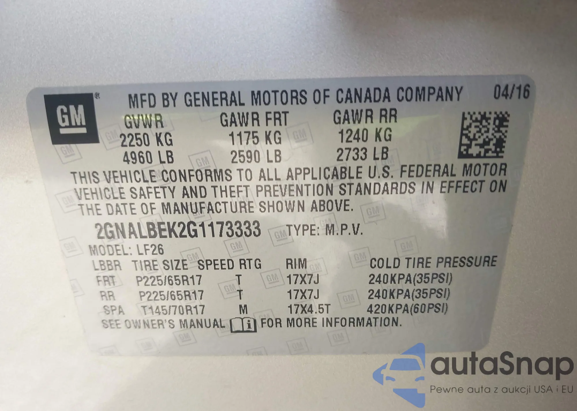 • VIN 2GNALBEK2G1173333