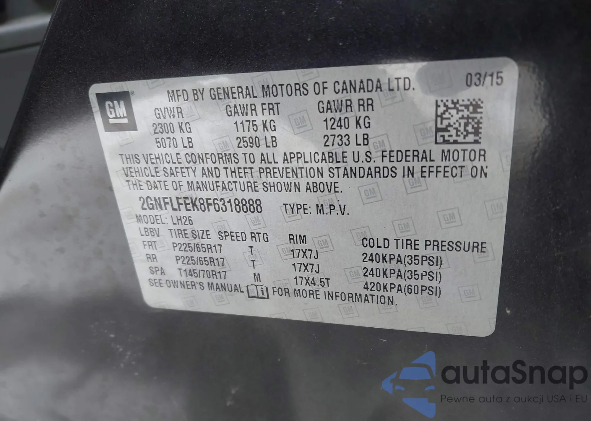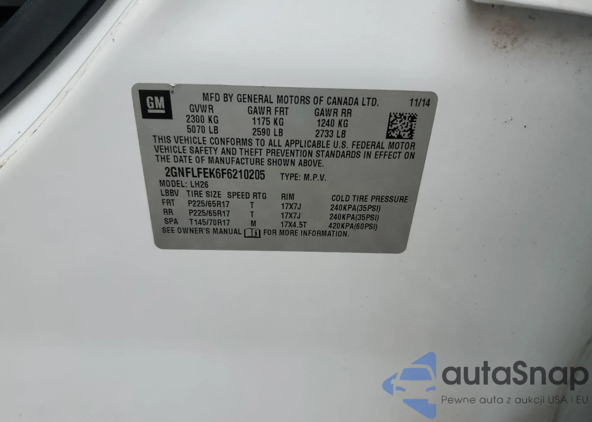 • VIN 2GNFLFEK6F6210205