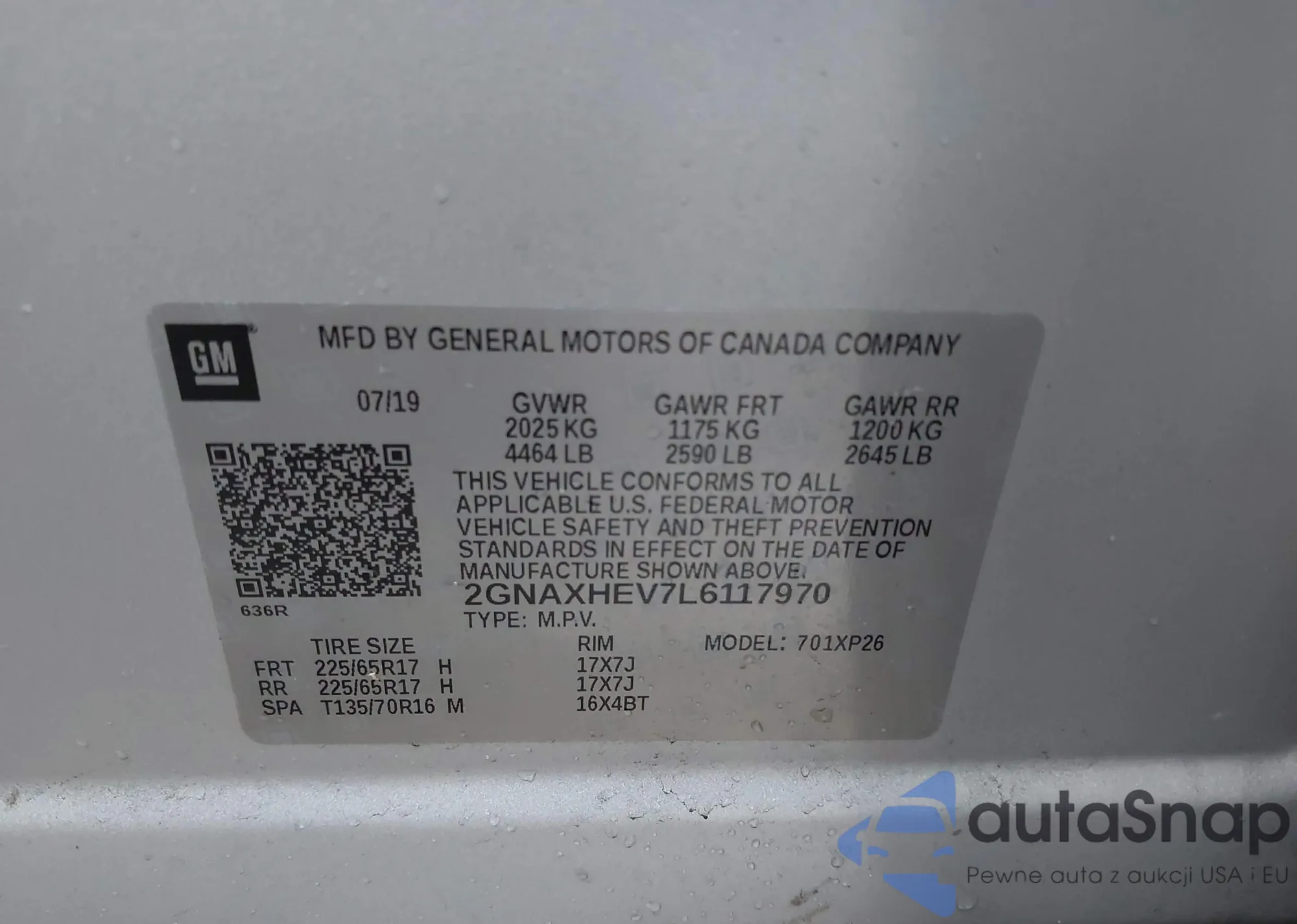 • VIN 2GNAXHEV7L6117970