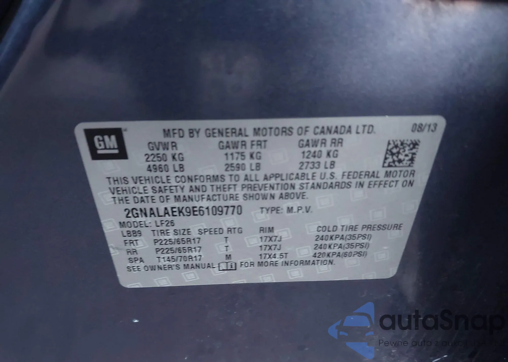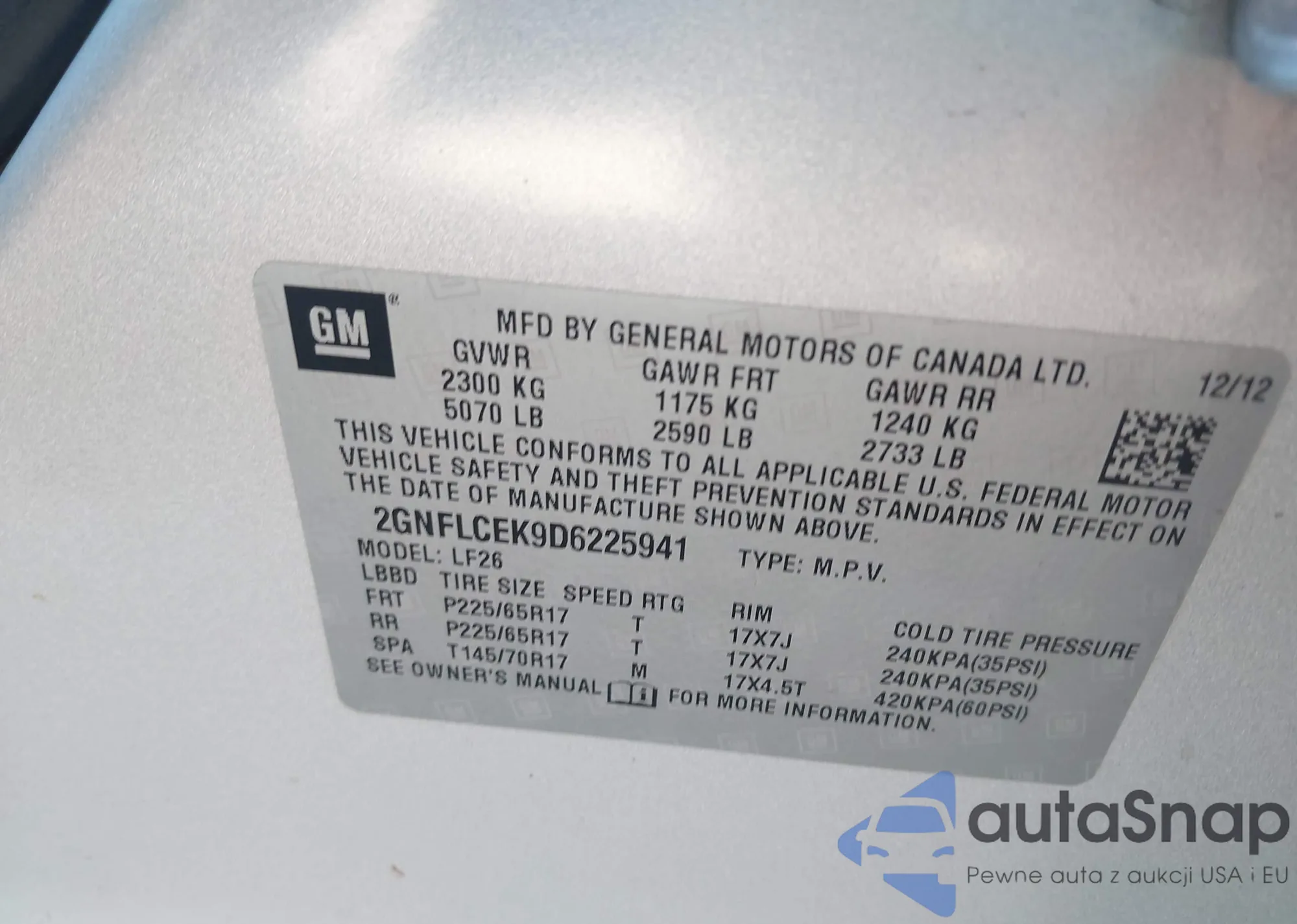 • VIN 2GNFLCEK9D6225941