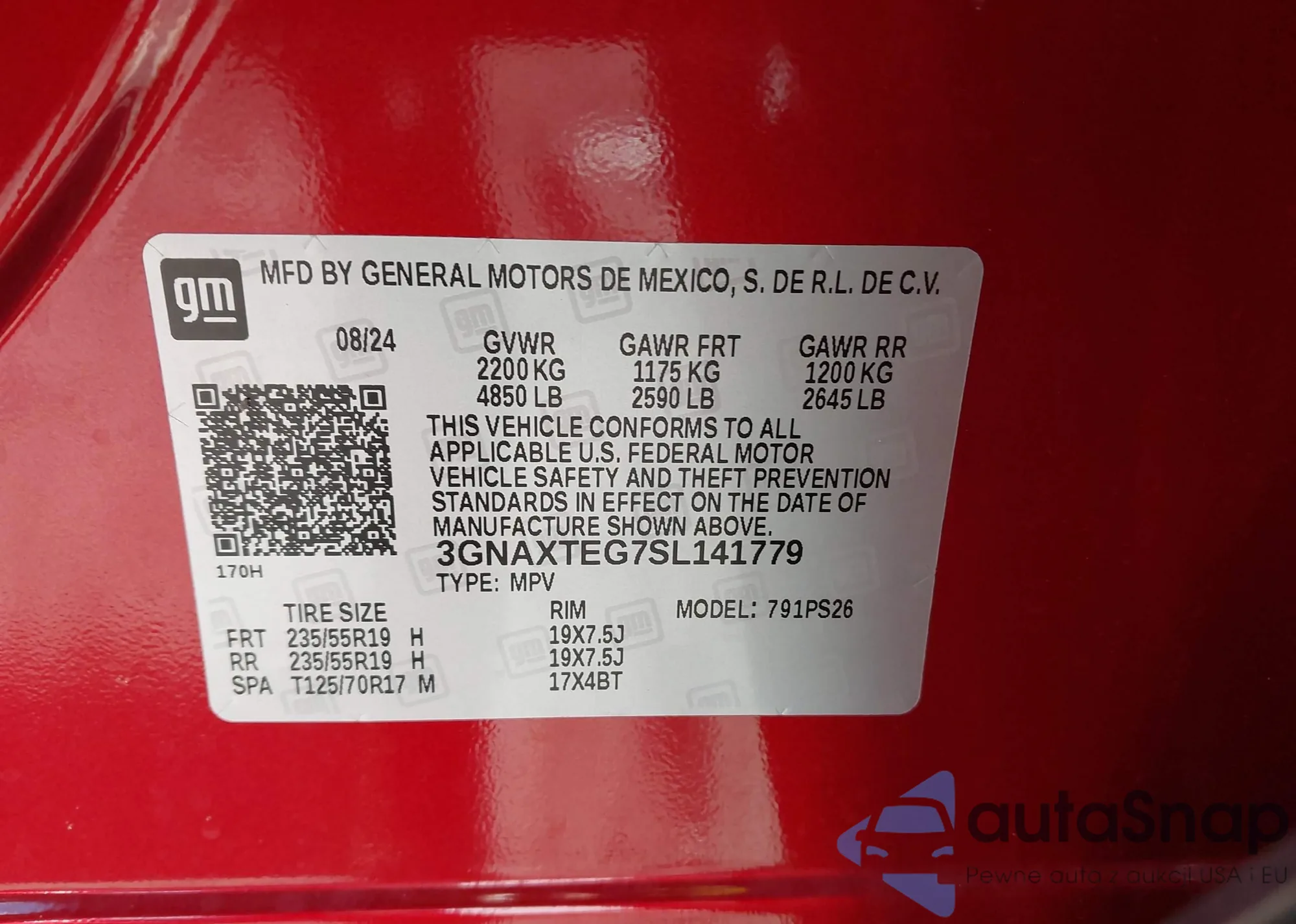 • VIN 3GNAXTEG7SL141779
