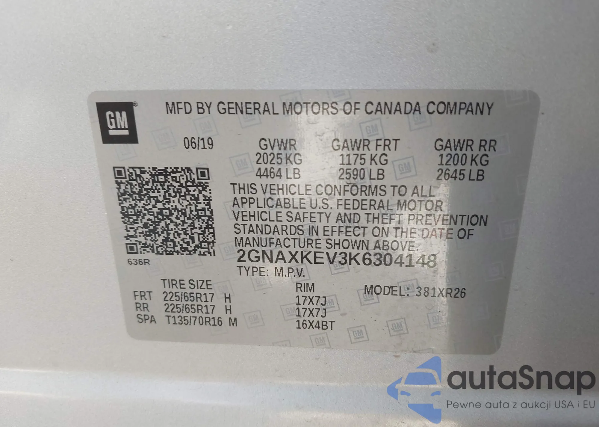 • VIN 2GNAXKEV3K6304148