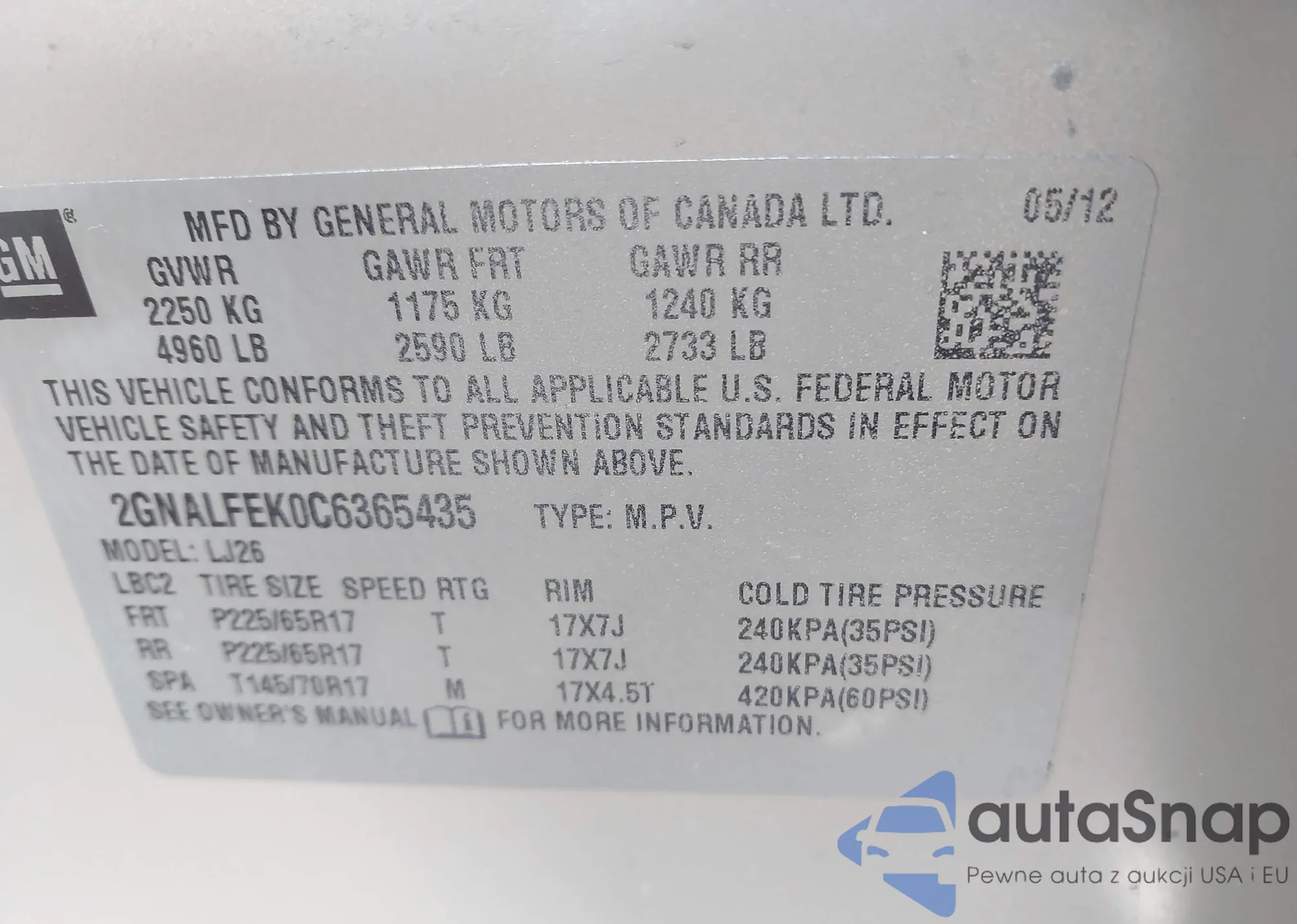 • VIN 2GNALFEK0C6365435