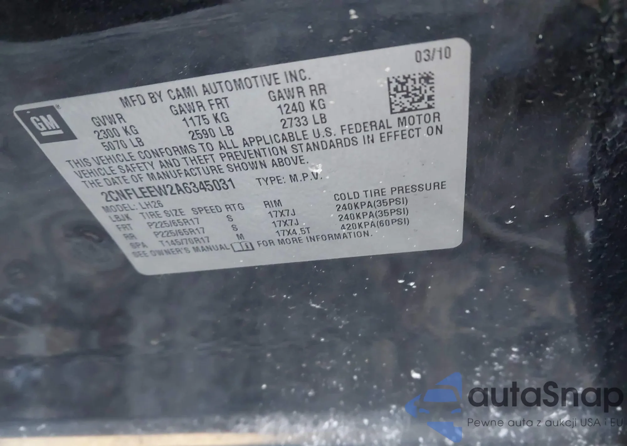 • VIN 2CNFLEEW2A6345031