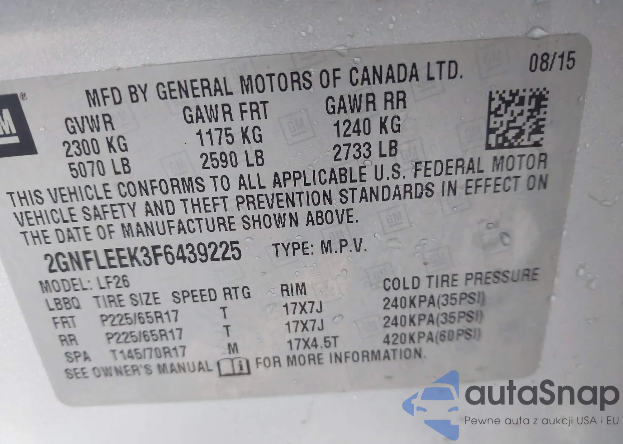 • VIN 2GNFLEEK3F6439225