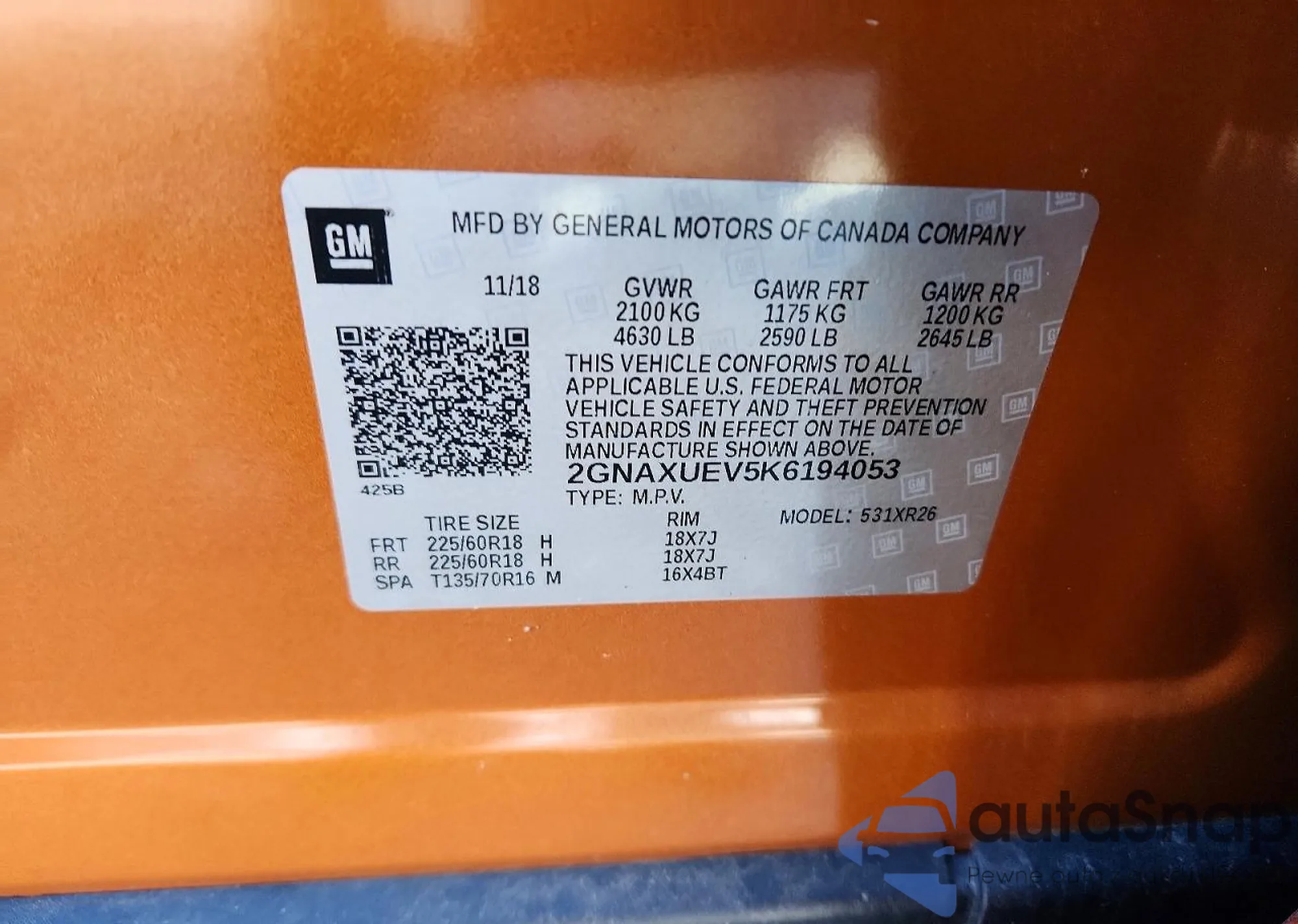 • VIN 2GNAXUEV5K6194053
