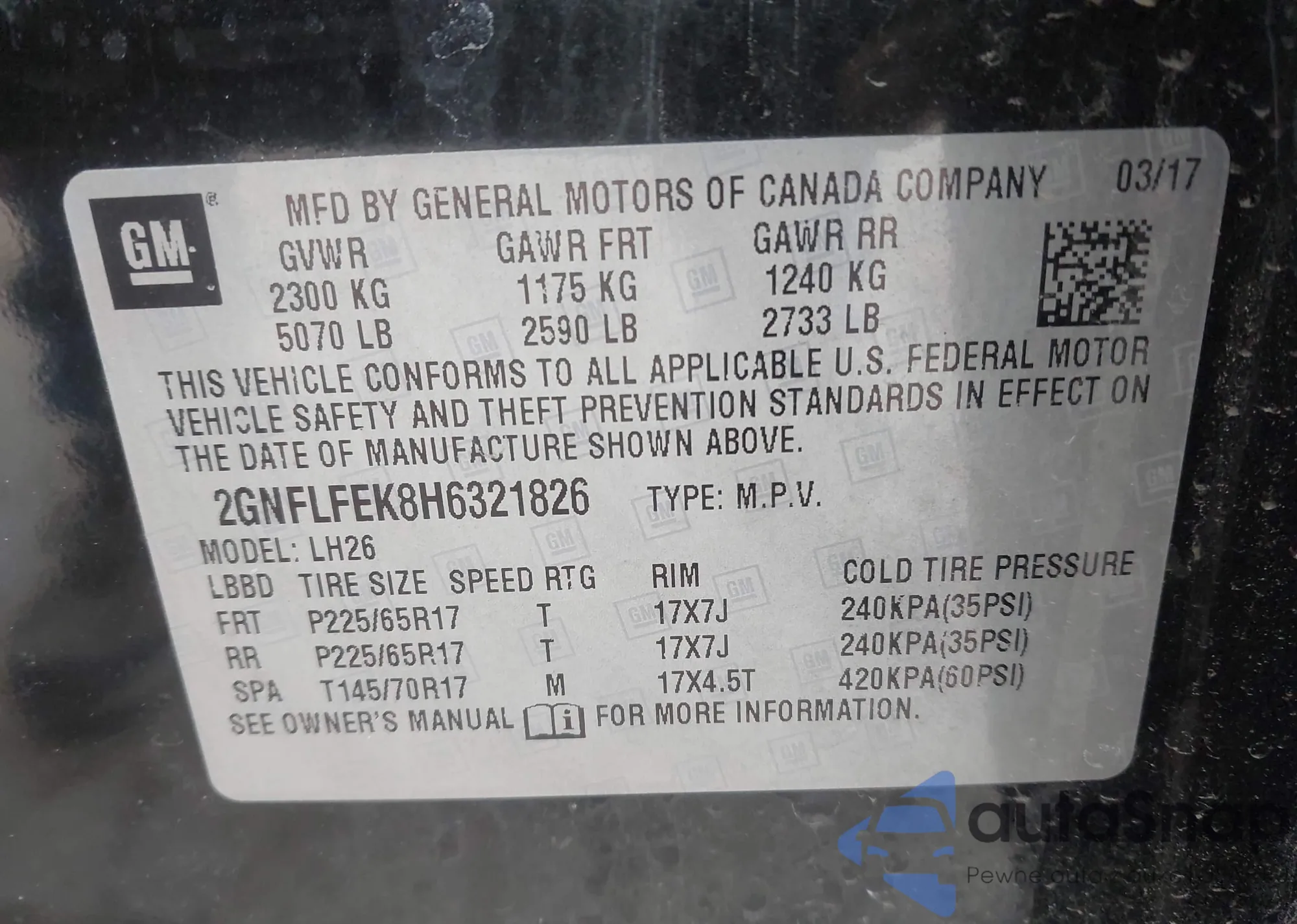 • VIN 2GNALBEK6H1578449
