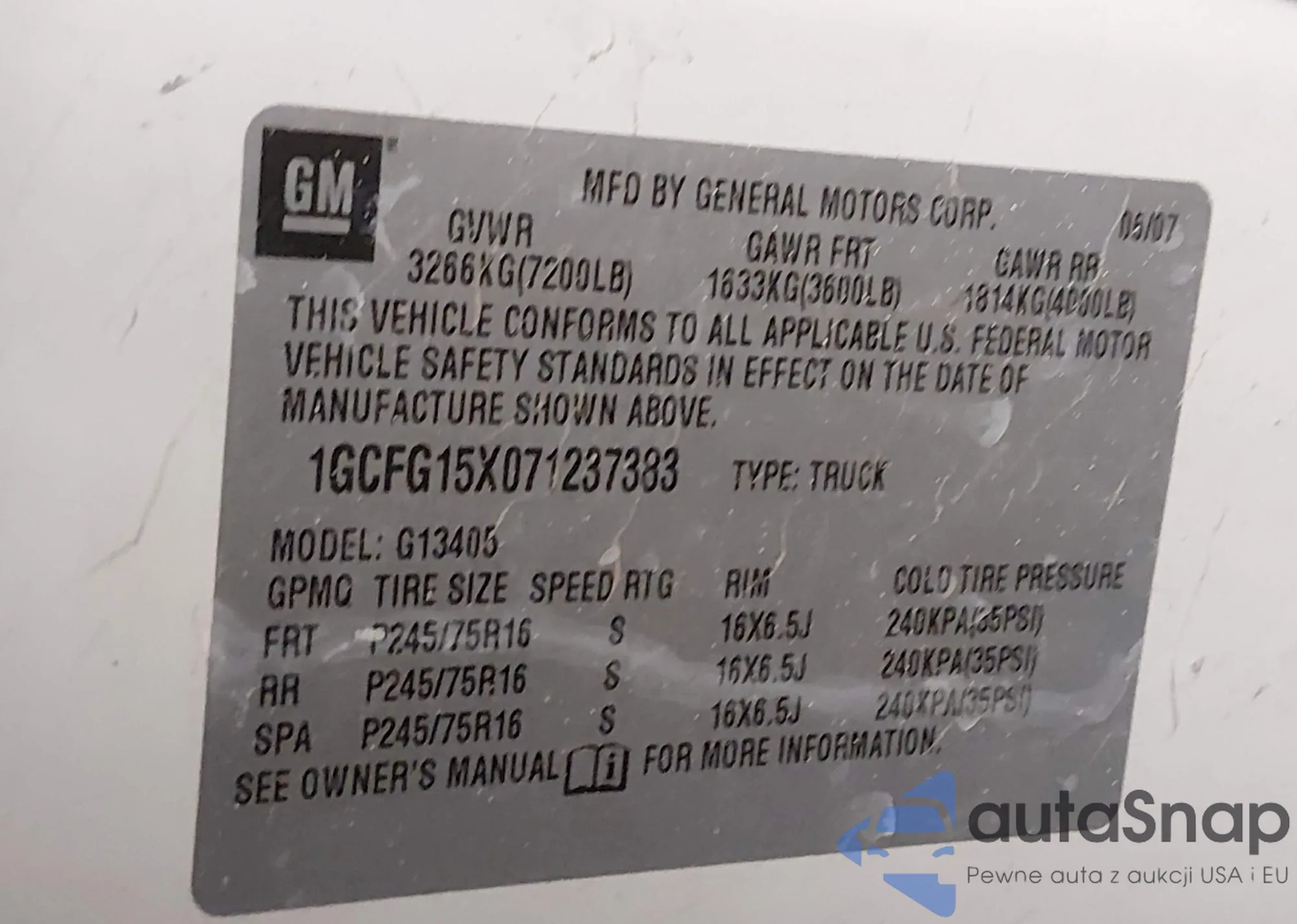 LOT: 43962678 VIN: 1GCFG15X071237383