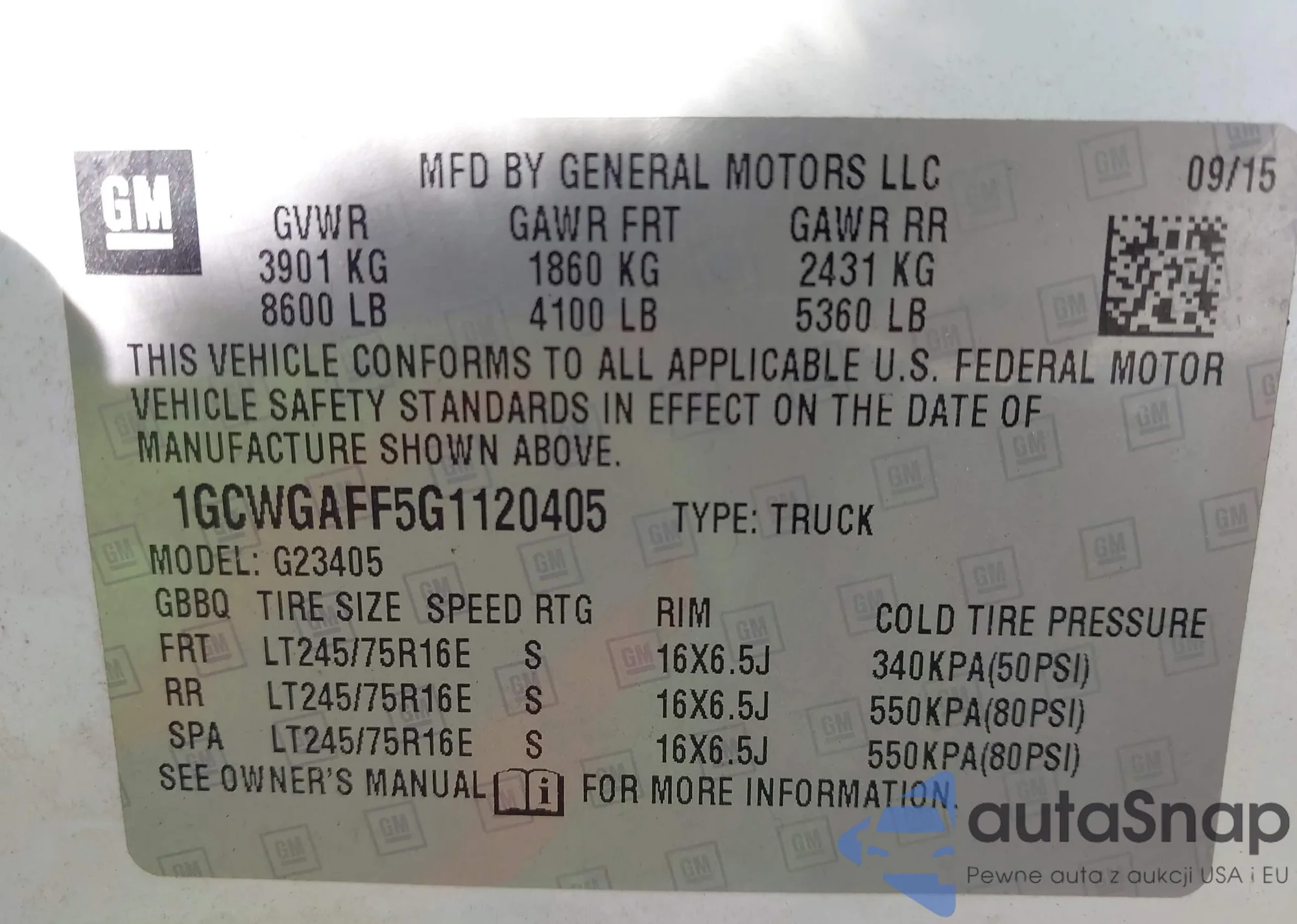 • VIN 1GCWGAFF5G1120405