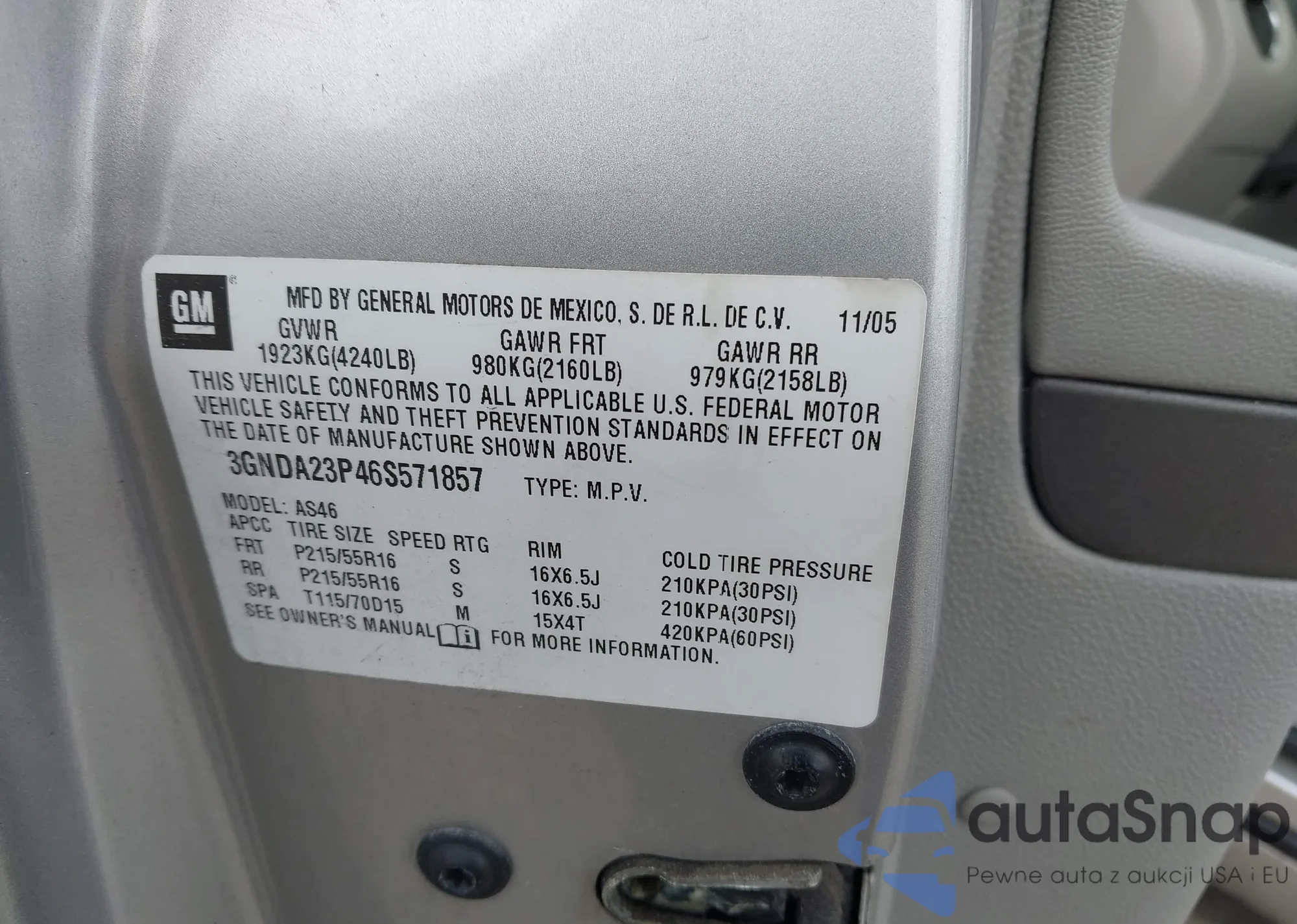 LOT: 44351014 VIN: 3GNDA23P46S571857