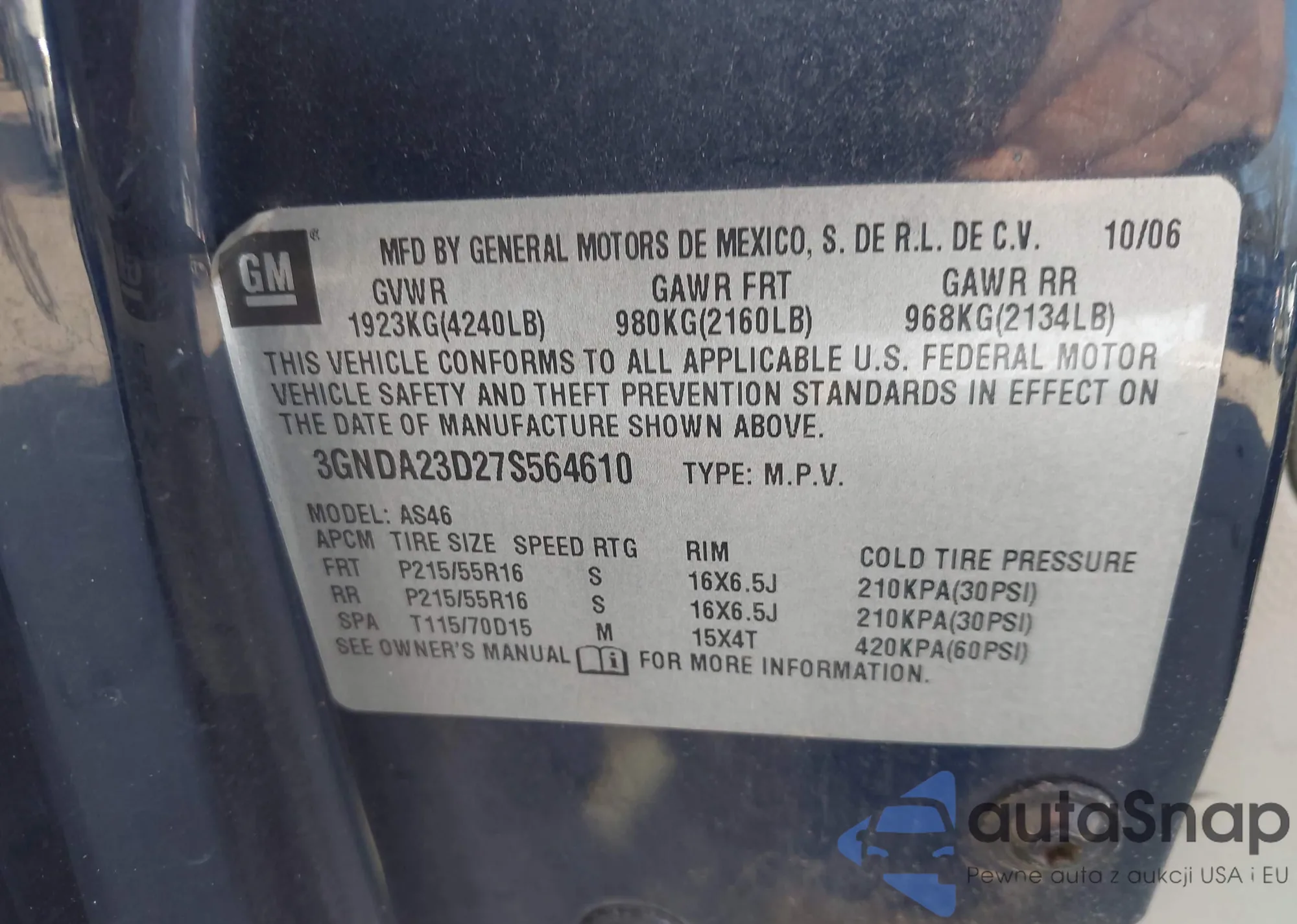• VIN 3GNDA23D27S564610
