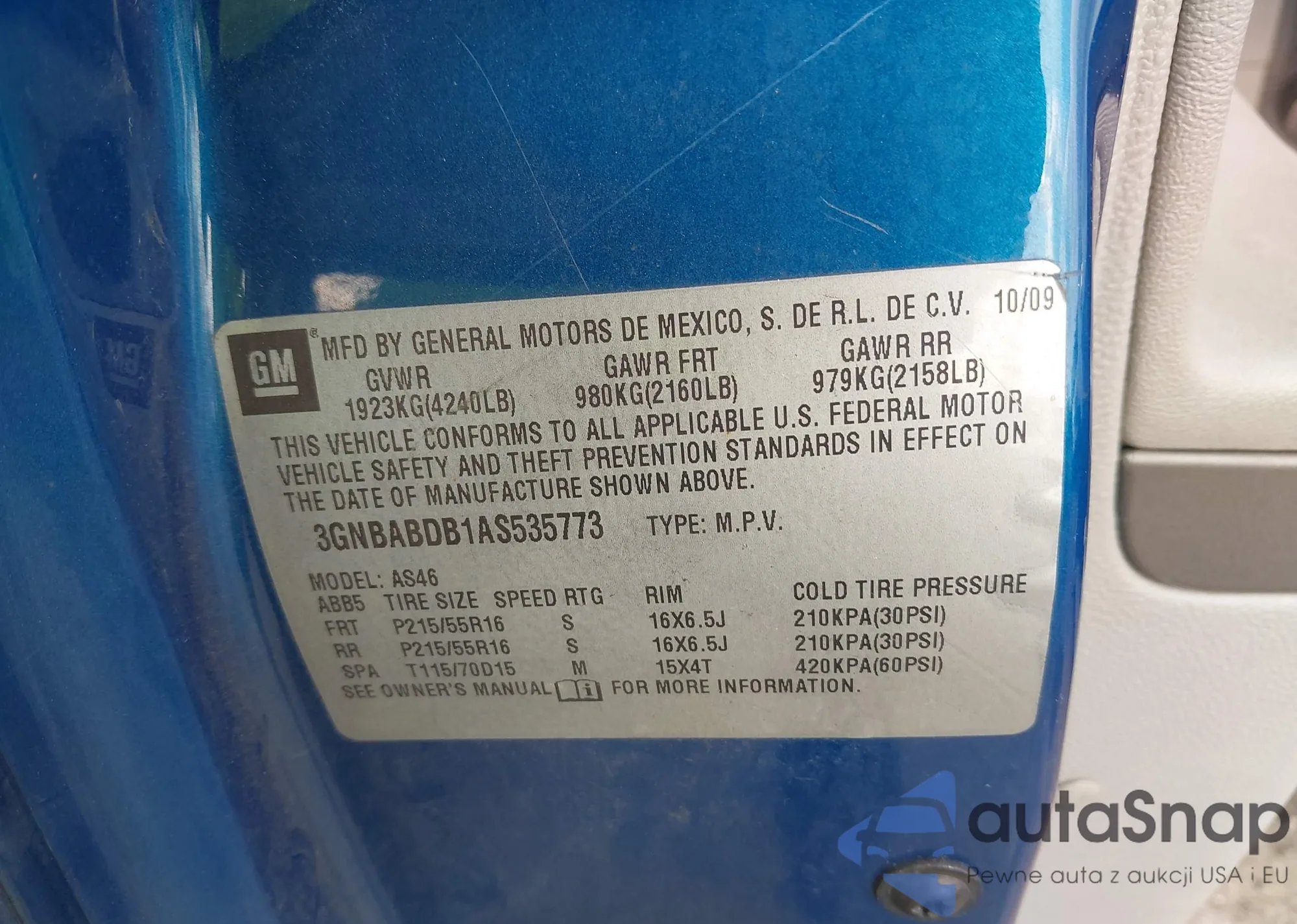 • VIN 3GNBABDB1AS535773