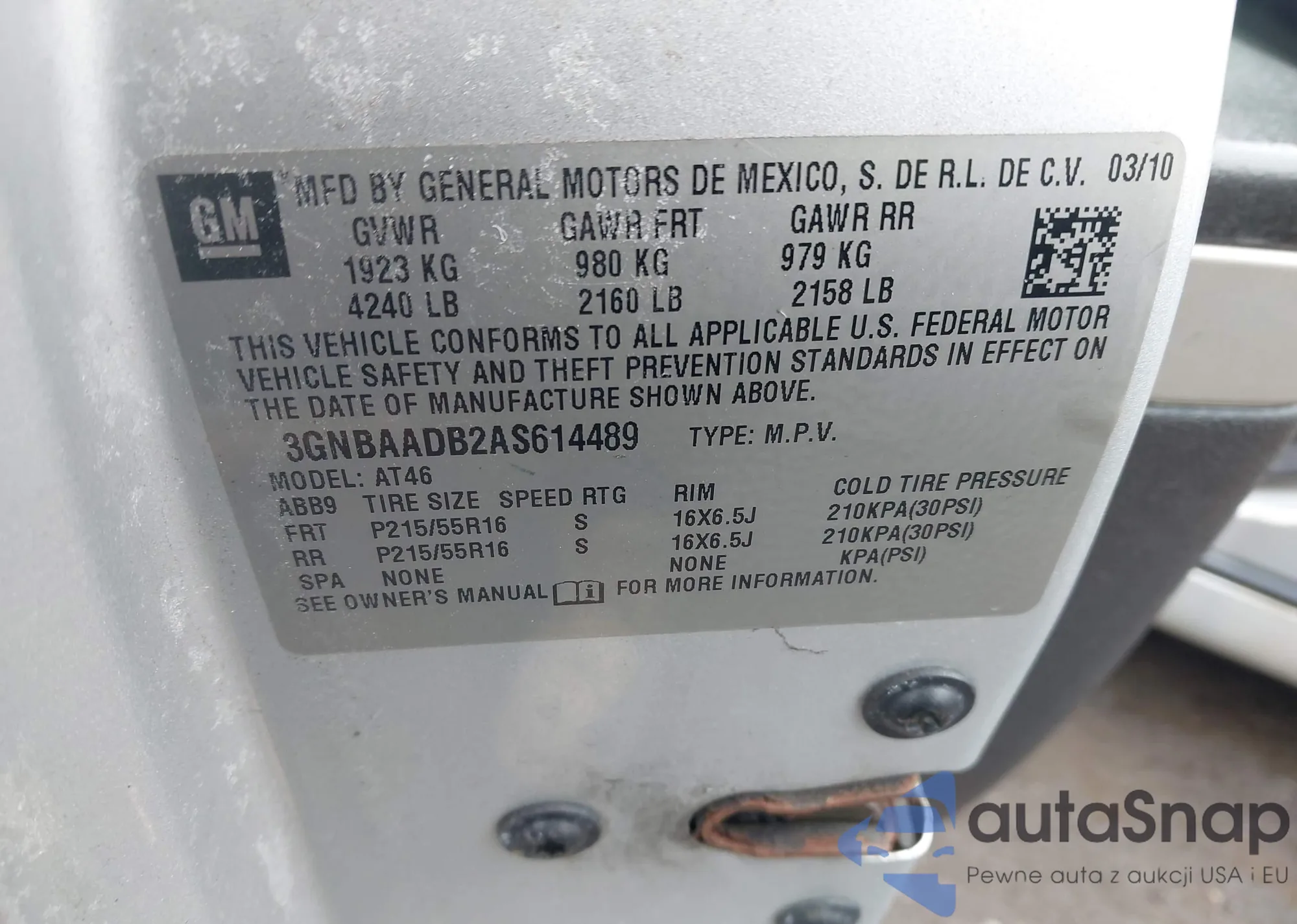 LOT: 44430869 VIN: 3GNBABDB8AS527315