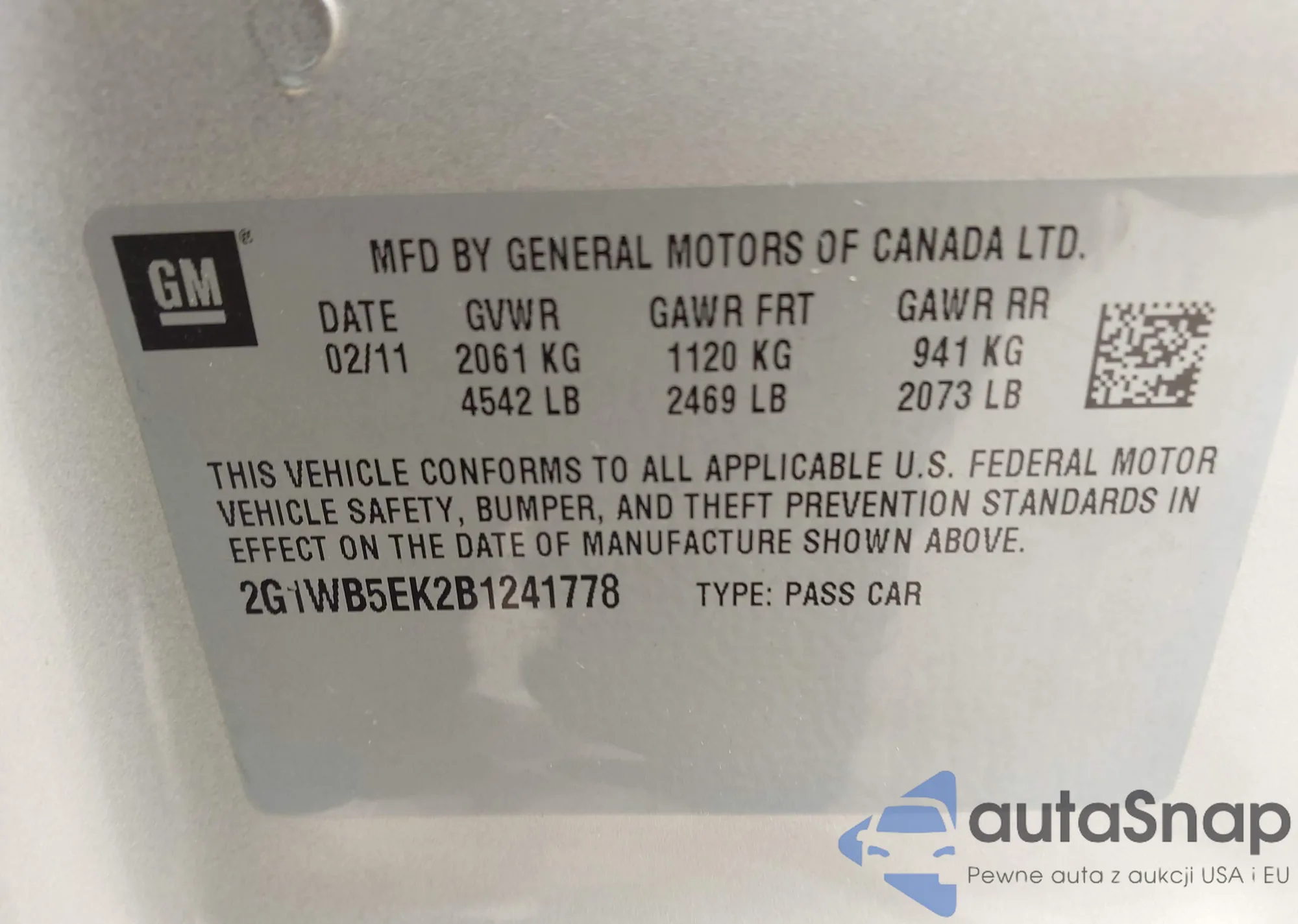 • VIN 2G1WB5EK2B1241778