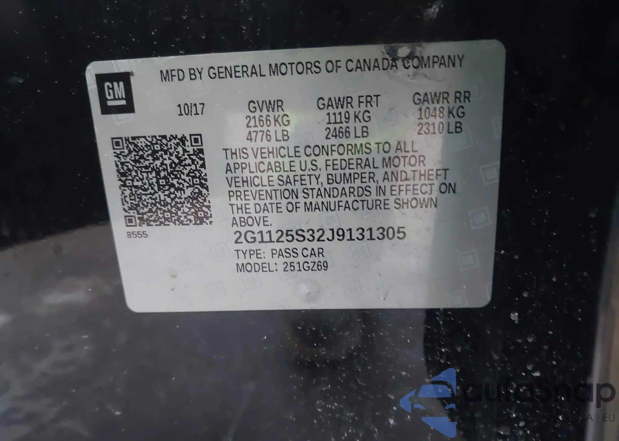 • VIN 2G1105S38J9174097