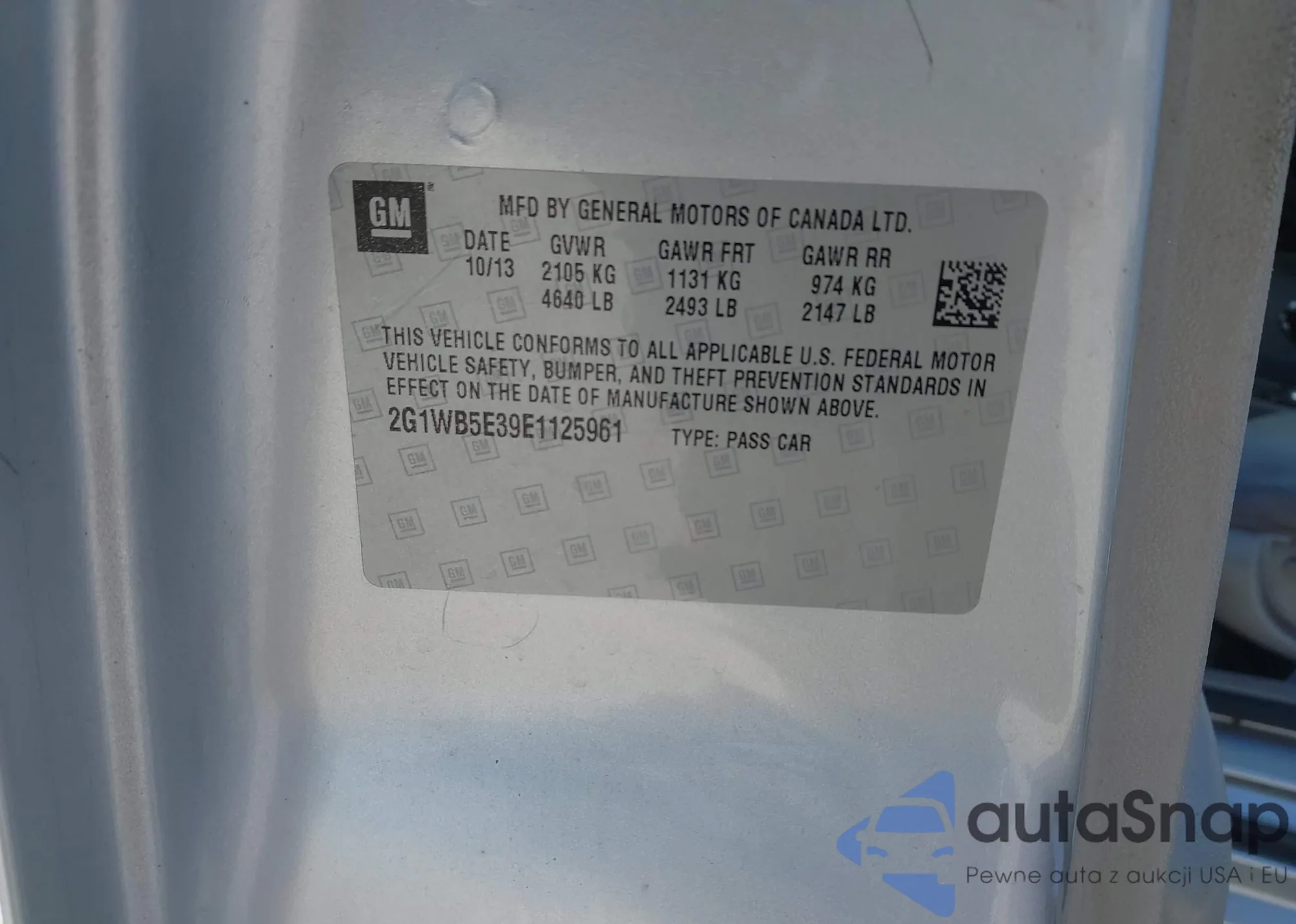 LOT: 44288912 VIN: 2G1WB5E39E1125961