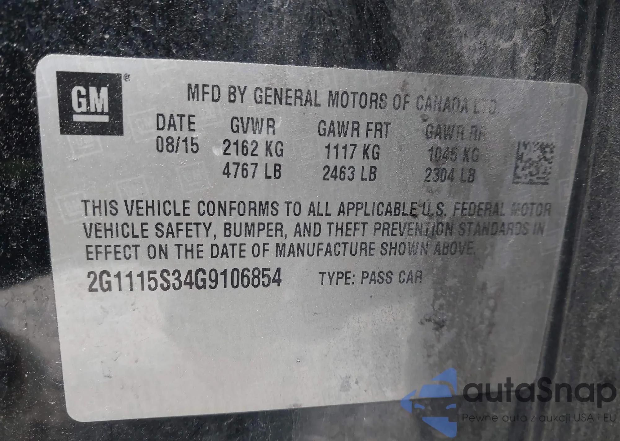 • VIN 2G1115S34G9106854